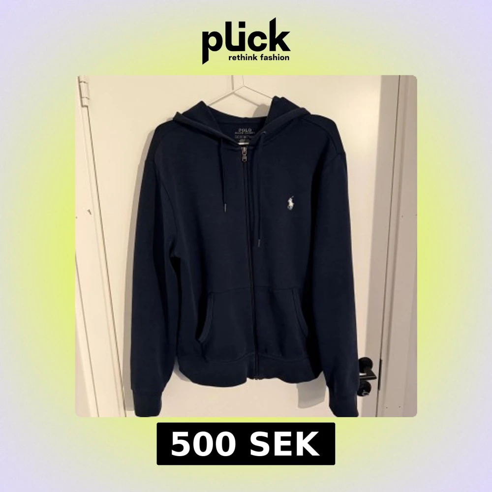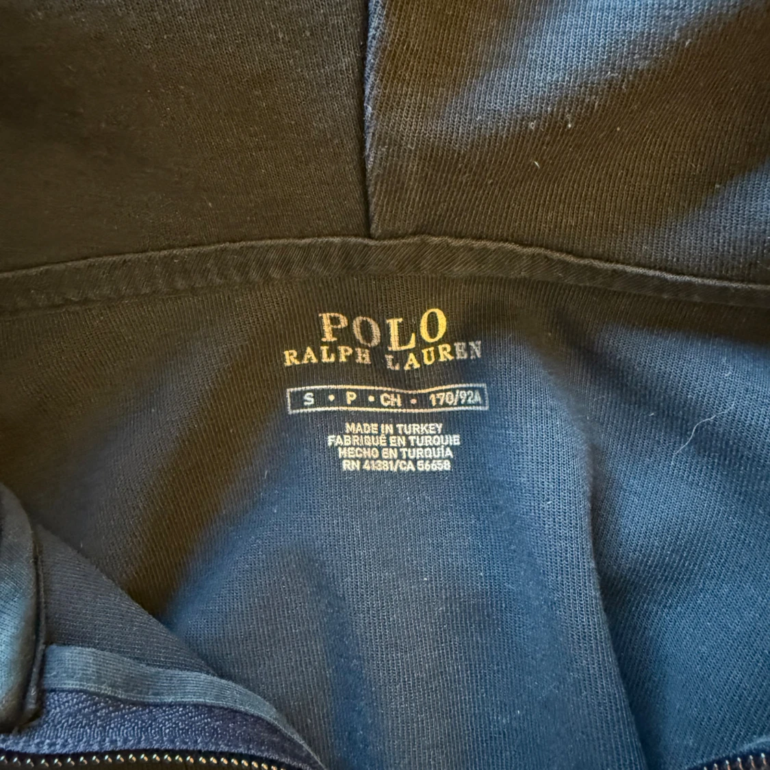 Snygg marinblå hoodie från Polo Ralph Lauren med dragkedja framtill, huva med snörning och klassisk vit logga på bröstet. Mjuk bomullskvalitet och två fickor framtill. Perfekt för chill dagar eller när du vill ha en clean look.