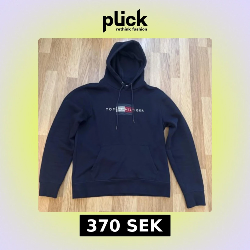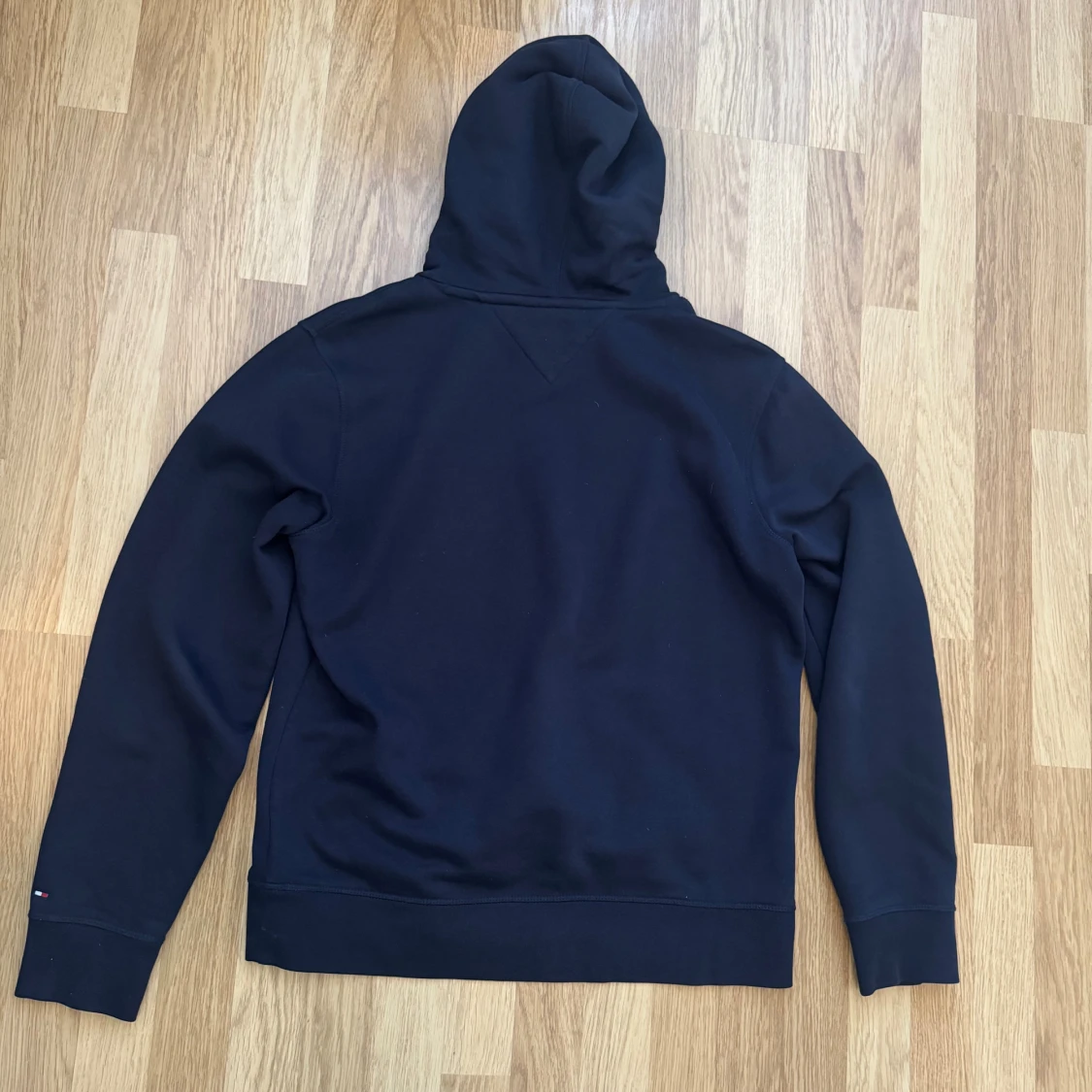 Snygg marinblå hoodie från Tommy Hilfiger med broderad logga och flagga på bröstet. Tröjan har huva med snörning, känguruficka och långa ärmar. Perfekt för dig som gillar klassisk streetstyle och vill ha något bekvämt och stilrent.