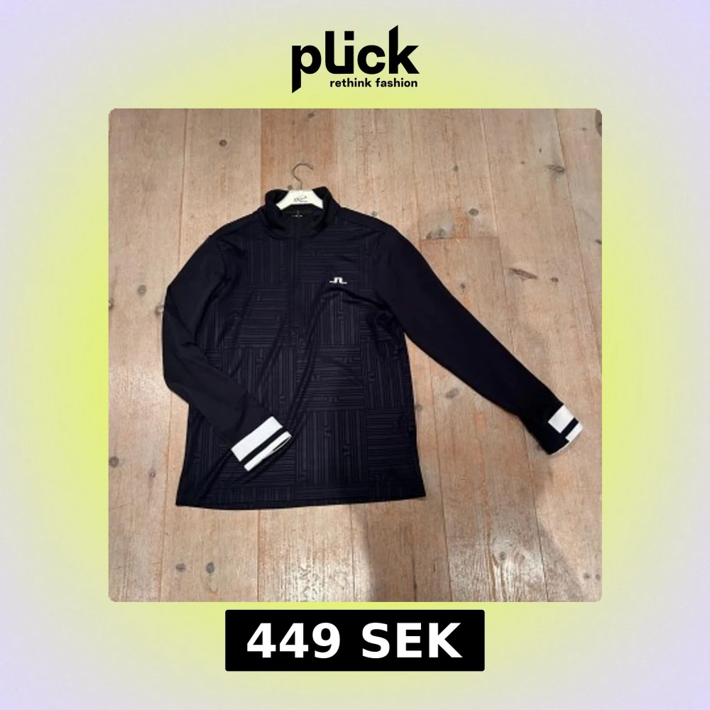 Svart långärmad tröja från J.Lindeberg med diskret geometriskt mönster och vitt JL-logga på bröstet. Tröjan har half zip, ståkrage och vita detaljer vid ärmsluten. Perfekt för dig som gillar stilren sportig look.