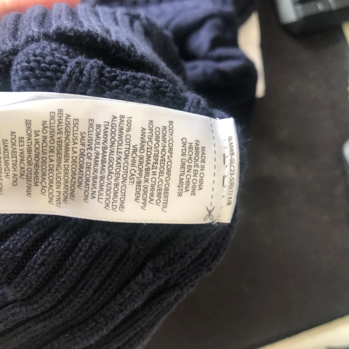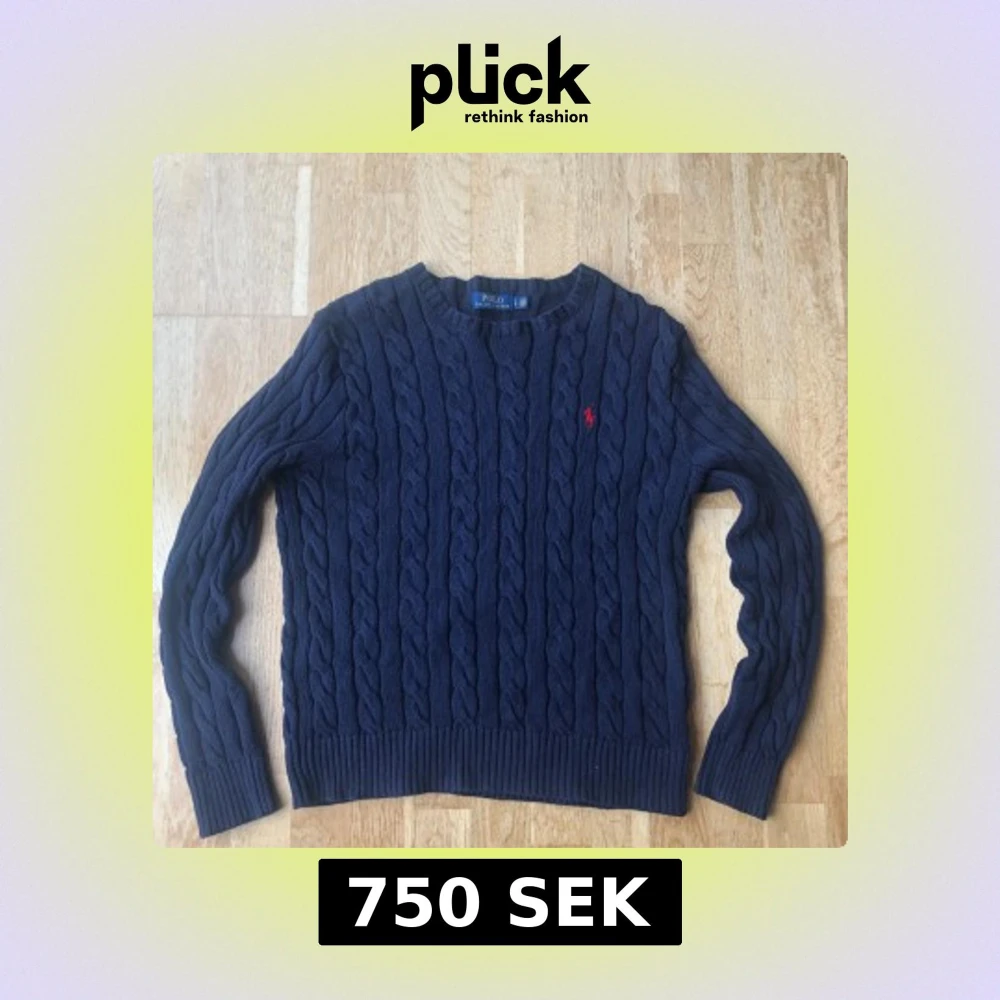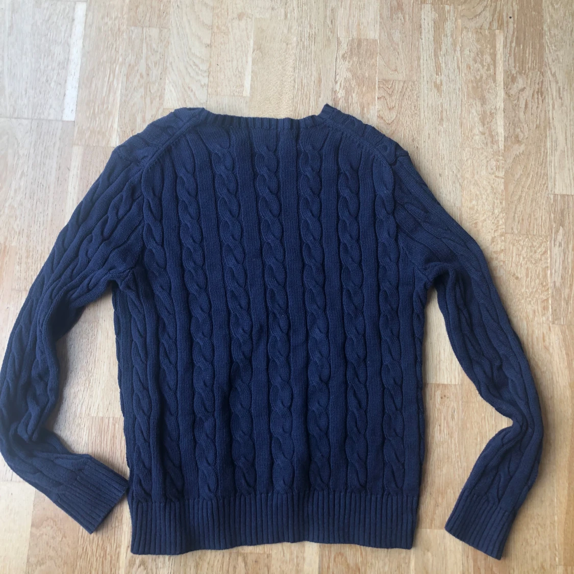 Kabelstickad marinblå tröja från Polo Ralph Lauren med klassisk rund hals och röd broderad logga på bröstet. Tröjan har långa ärmar och ribbade muddar vid ärmslut och nederkant. Har du någon fråga eller liknande är det bara att ställa. Pris kan diskuteras och byten kan vara intressant