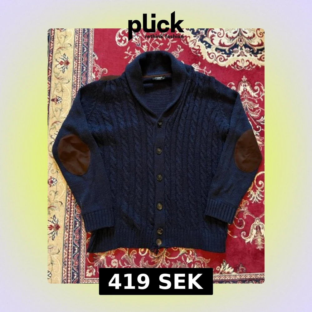 Säljer min ascoola kabelstickade marinblåa kofta med mockadetaljer. Perfekt nu under vintern ❄️ Den har en liten defekt som knappt syns vid knappen längst ner(se bild 3), samt är lite nopprig men det går lätt att fixa 👍Storlek M. Hör av er vid funderingar 🙌
