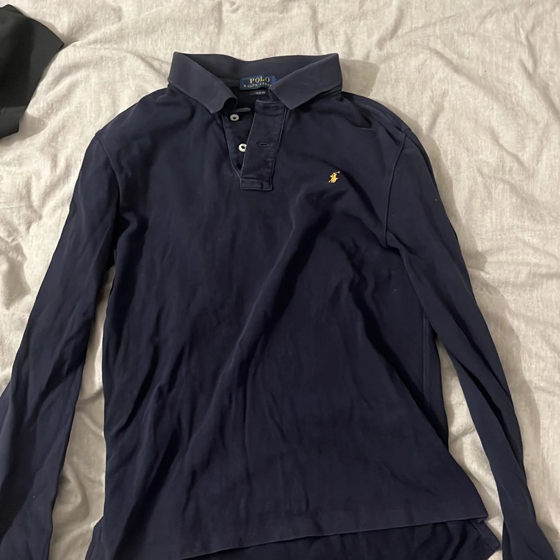 Snygg marinblå långärmad pikétröja från Polo Ralph Lauren i slim fit. Klassisk krage och knäppning framtill, med den ikoniska gula broderade loggan på bröstet. Mjuk bomullskvalitet som är skön mot huden och passar perfekt till jeans eller chinos. Passar XS & S