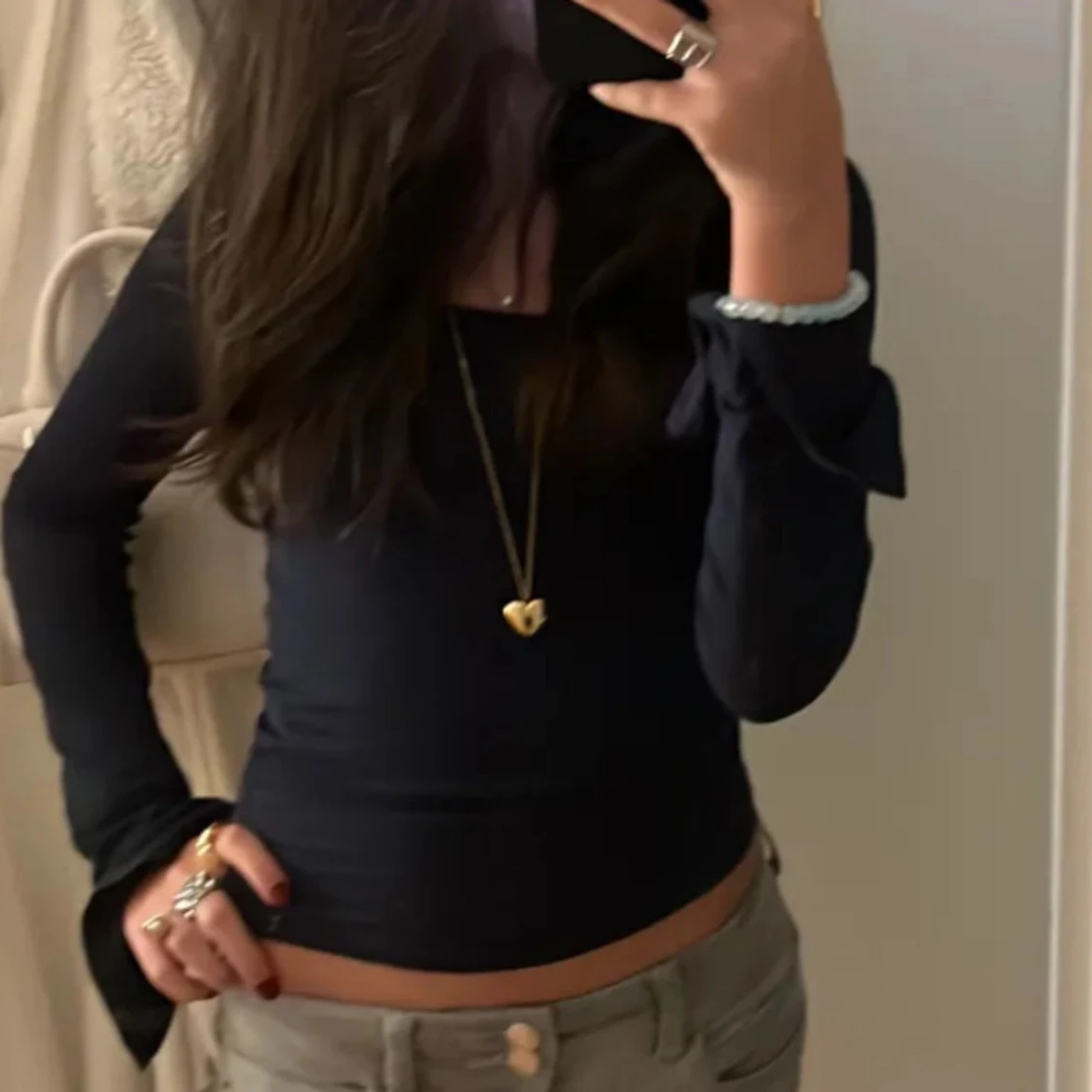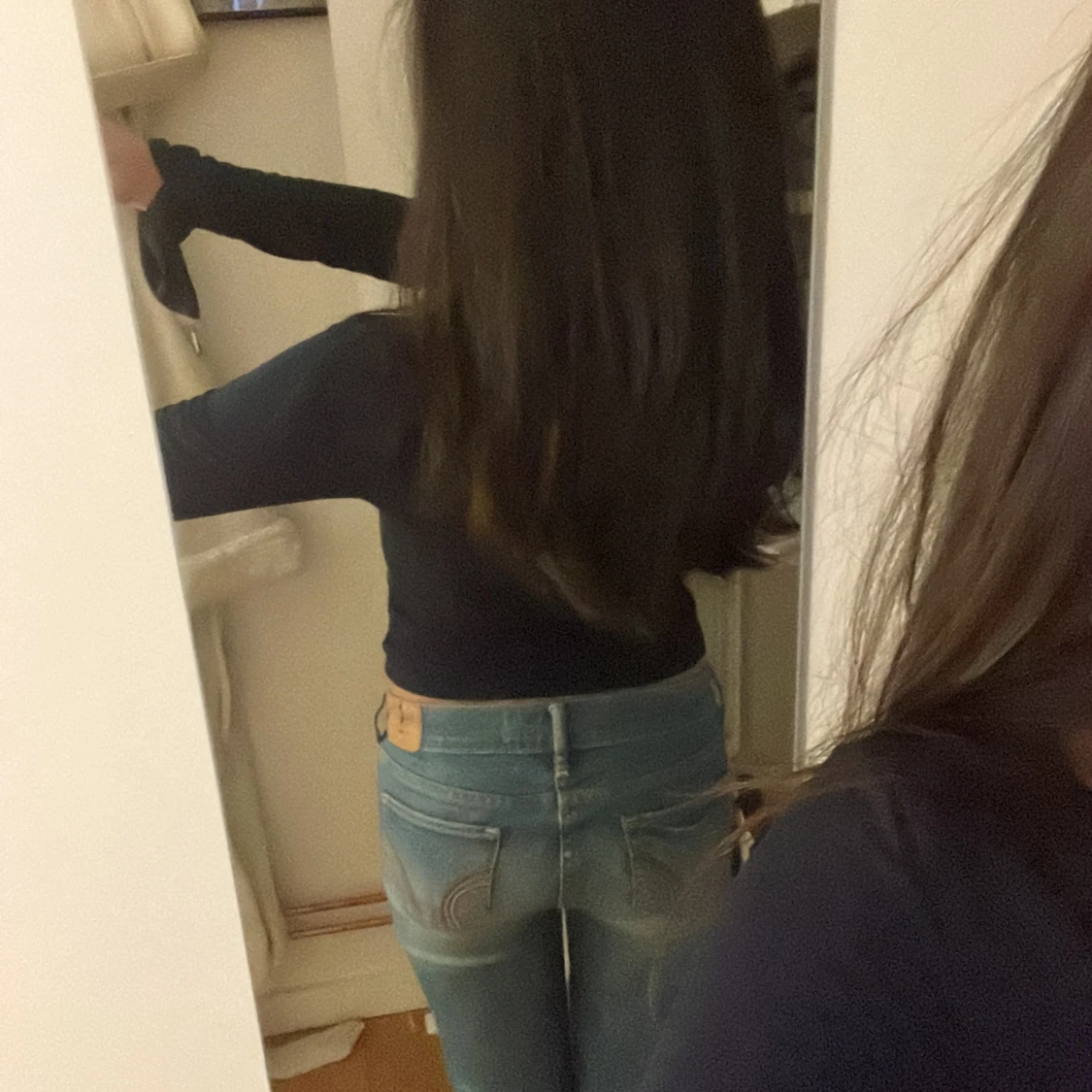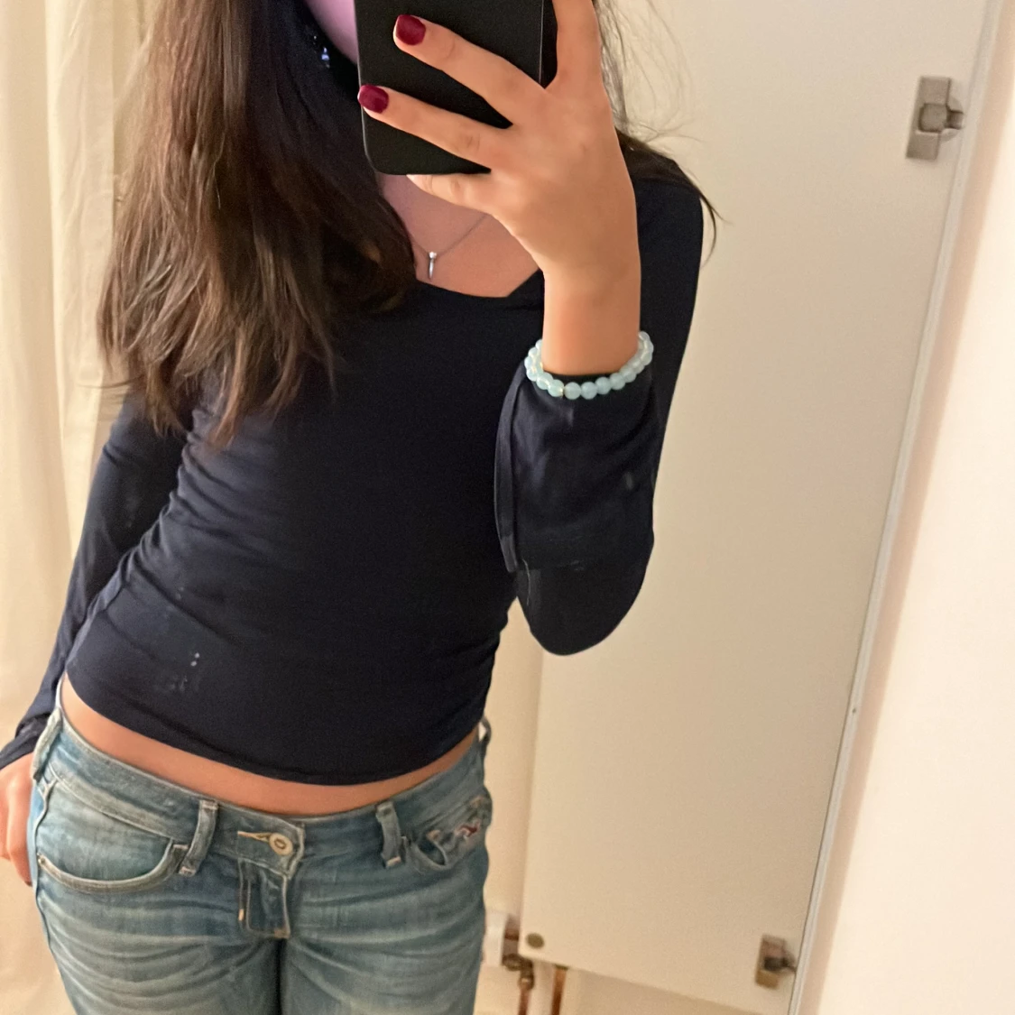 Super vacker marinblå långärmad tröja med slits i ärmarna. Den är jätteskön att ha på sig i skolan, speciellt på våren. Den är nästan som ny. Kontakta mig för köp eller frågor om pris osv.💝💕