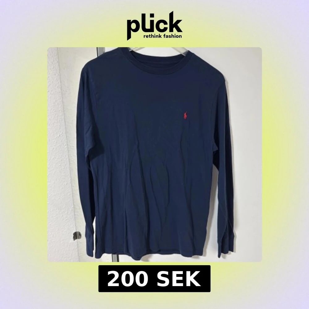 Snygg marinblå långärmad tröja från Polo Ralph Lauren i mjuk bomull. Klassisk rund hals och diskret röd logobrodyr på bröstet. Storlek XL