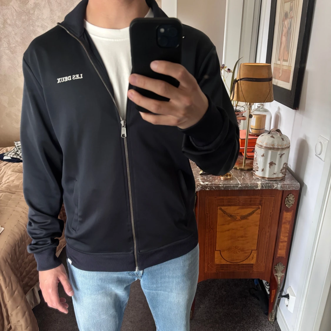 Säljer en marinblå track jacket från Les Deux med dragkedja. Mycket bra skick. Ställ frågor om ni undrar något. Priset kan diskuteras vid snabb affär
