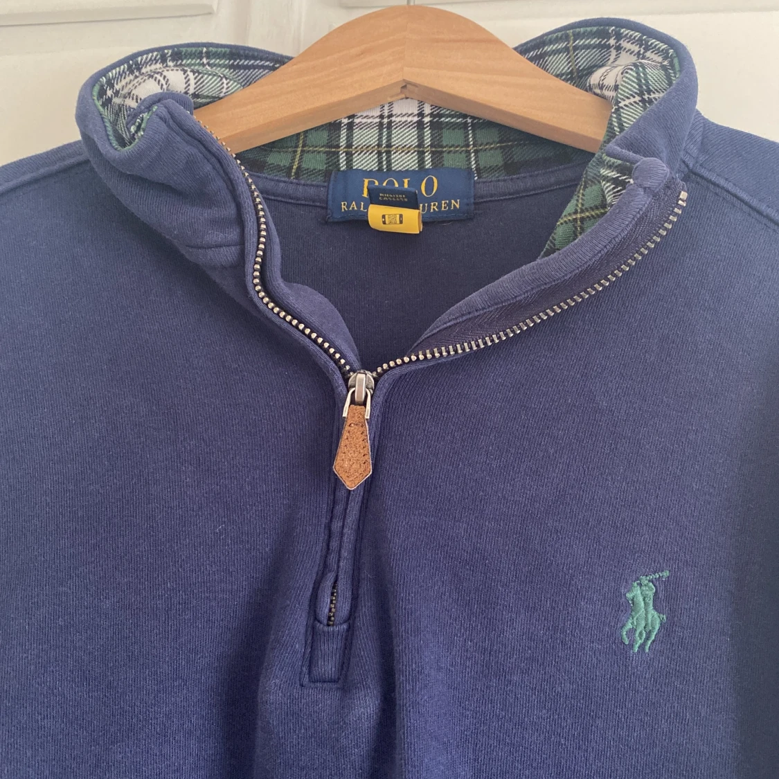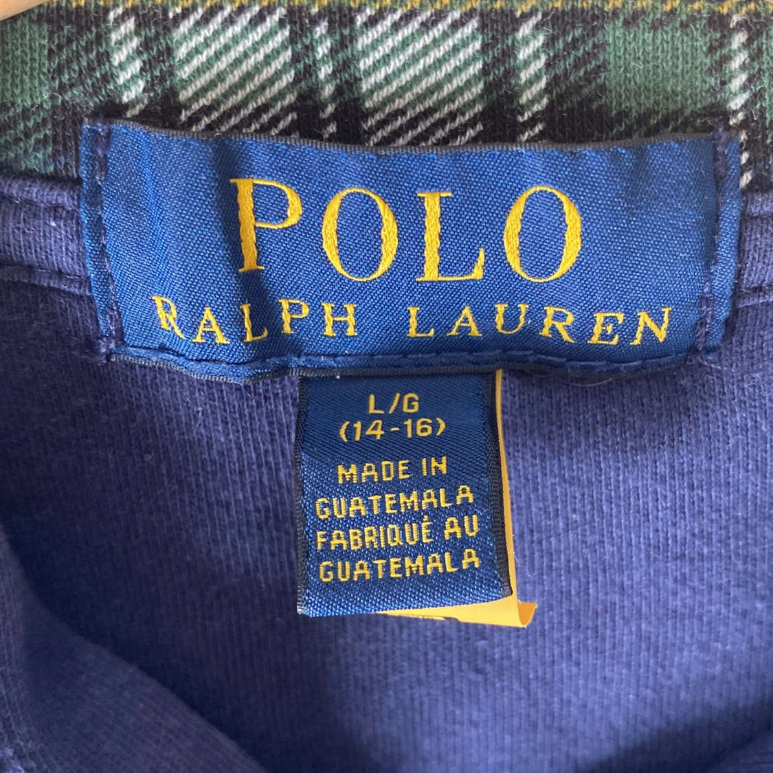 En marinblå half zip up från Polo Ralph Lauren. Storlek 14-16 men kan passa 12-16 också. Väldigt fint skick inga fläckar eller skador men är lite urtvättad. Vill man ha fler bilder eller diskutera pris så kan vi lösa det.