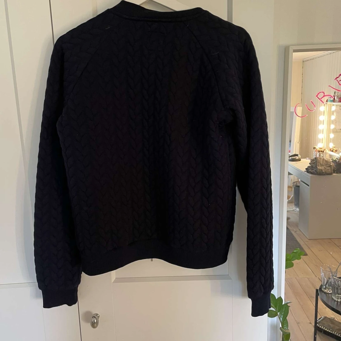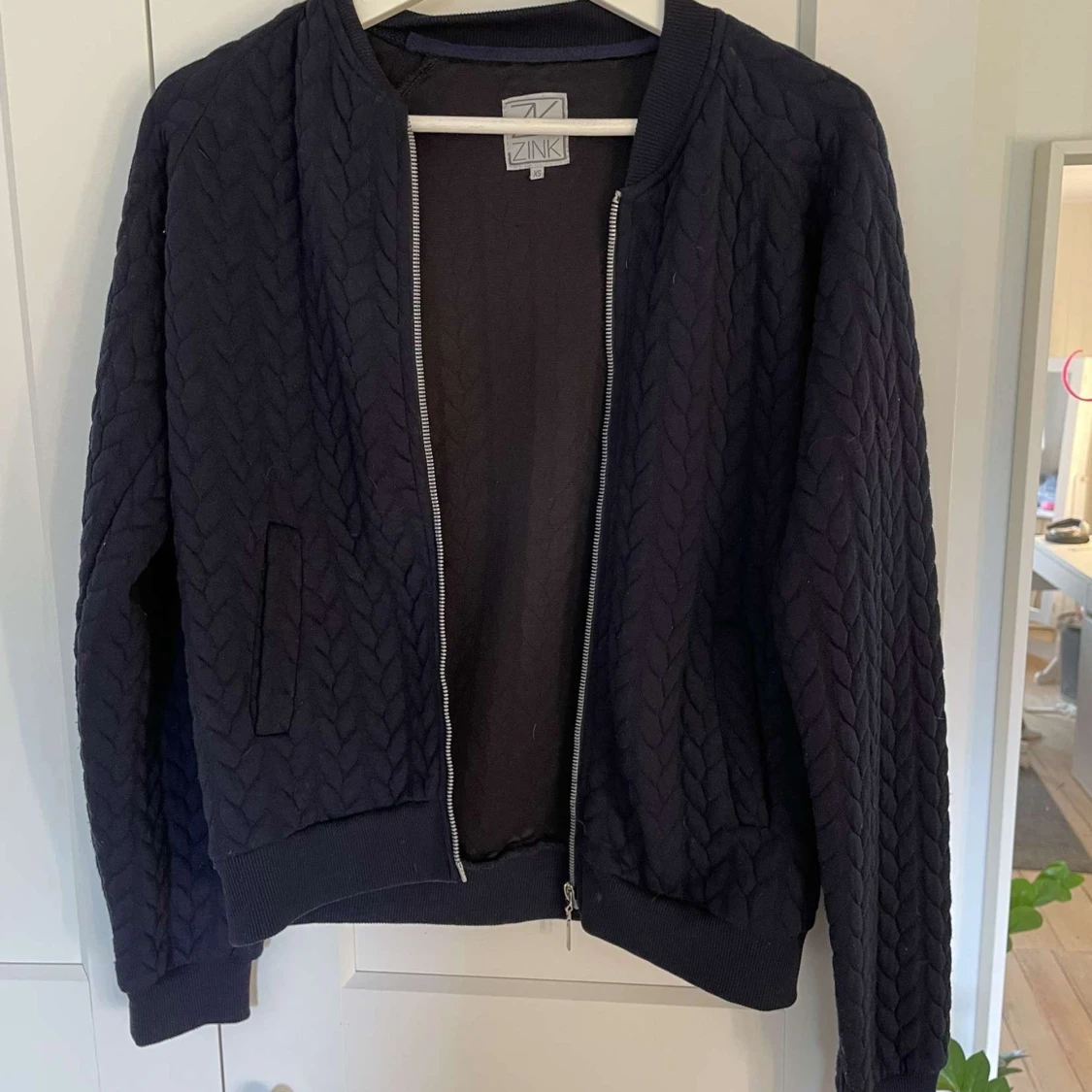 Säljer en marinblå quiltad bomberjacka från Zink i storlek XS (Mer likt S). Tröjan har dragkedja framtill, ribbade muddar och ett snyggt mönster i tyget. Perfekt för dig som vill ha en stilren och bekväm tröja med lite extra struktur💗Använd inte köp nu!