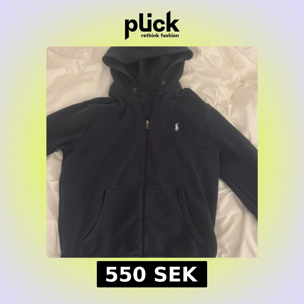 Snygg marinblå hoodie från Polo Ralph Lauren med dragkedja och klassisk vit logga på bröstet. Tröjan har huva, känguruficka,pris kan diskuteras 🥰