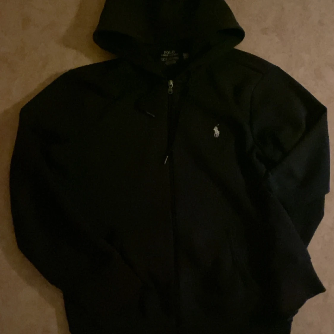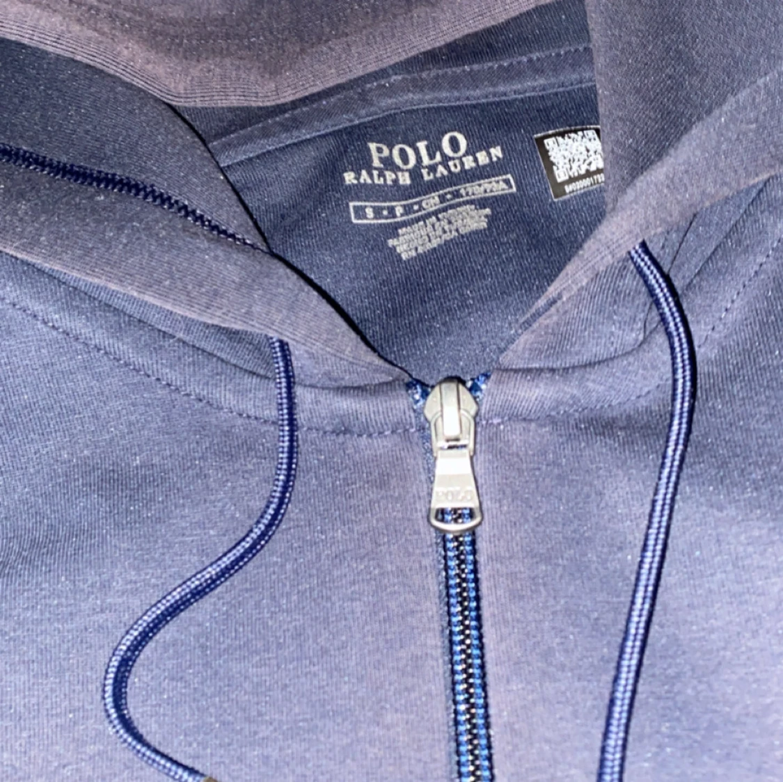Blå hoodie från Polo Ralph Lauren med dragkedja och klassisk vit broderad logga på bröstet. Tröjan har huva med snörning och är tillverkad i mjuk bomull. Perfekt för en chill och stilren look. Ny pris 2000-2200 väldigt fint skick