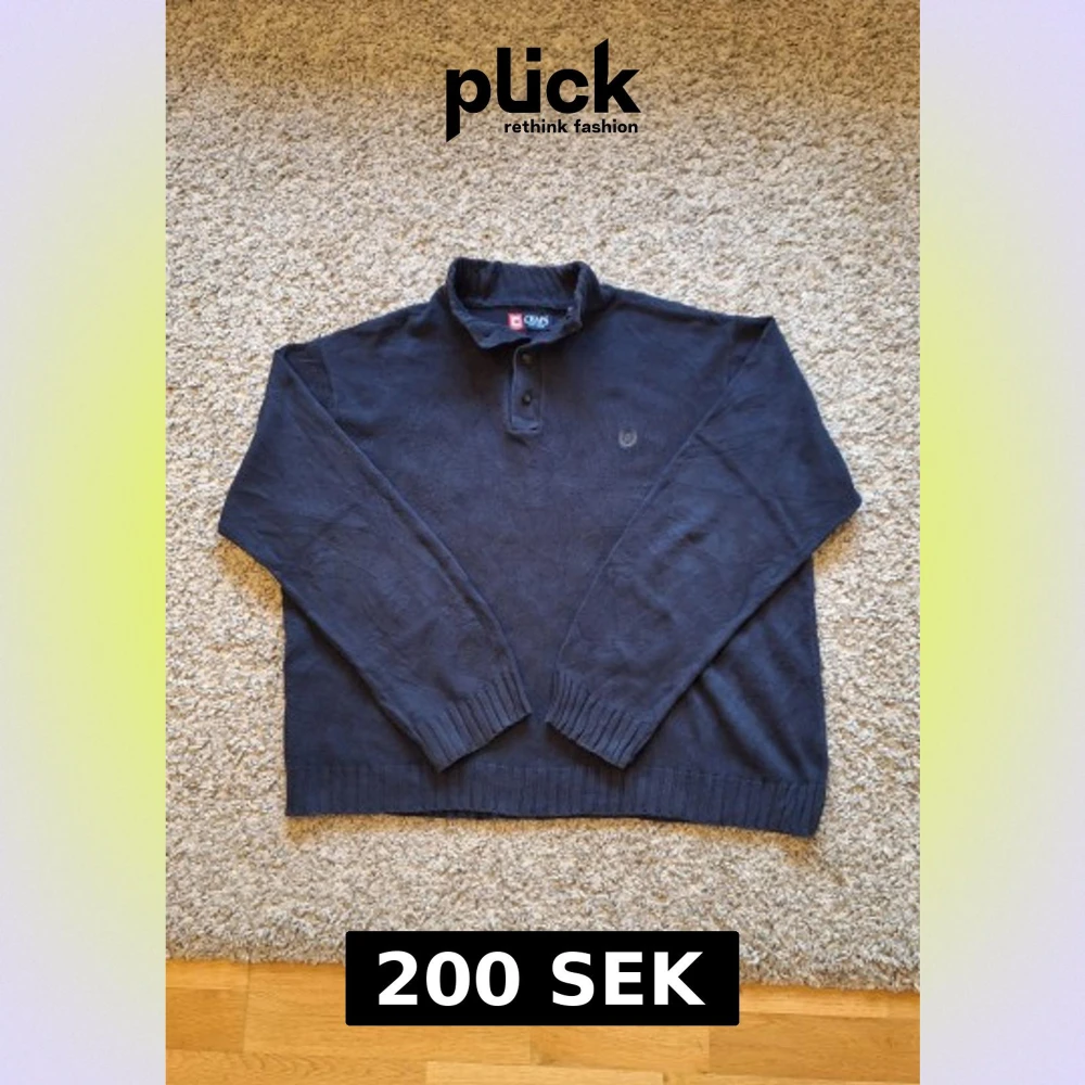 Snygga varm marinblå stickad tröja med halvpolokrage och knappar från CHAPS i storlek XXL, men skulle nog säga den passar mer som XL/L. 100% bomull. Använd fåtal gånger och skicket är riktigt bra, inga defekter eller slitningar finns. Den har en halvpolokrage med knappar. Passar suveränt för dig som gillar stilrena outfits. Skick: 8/10