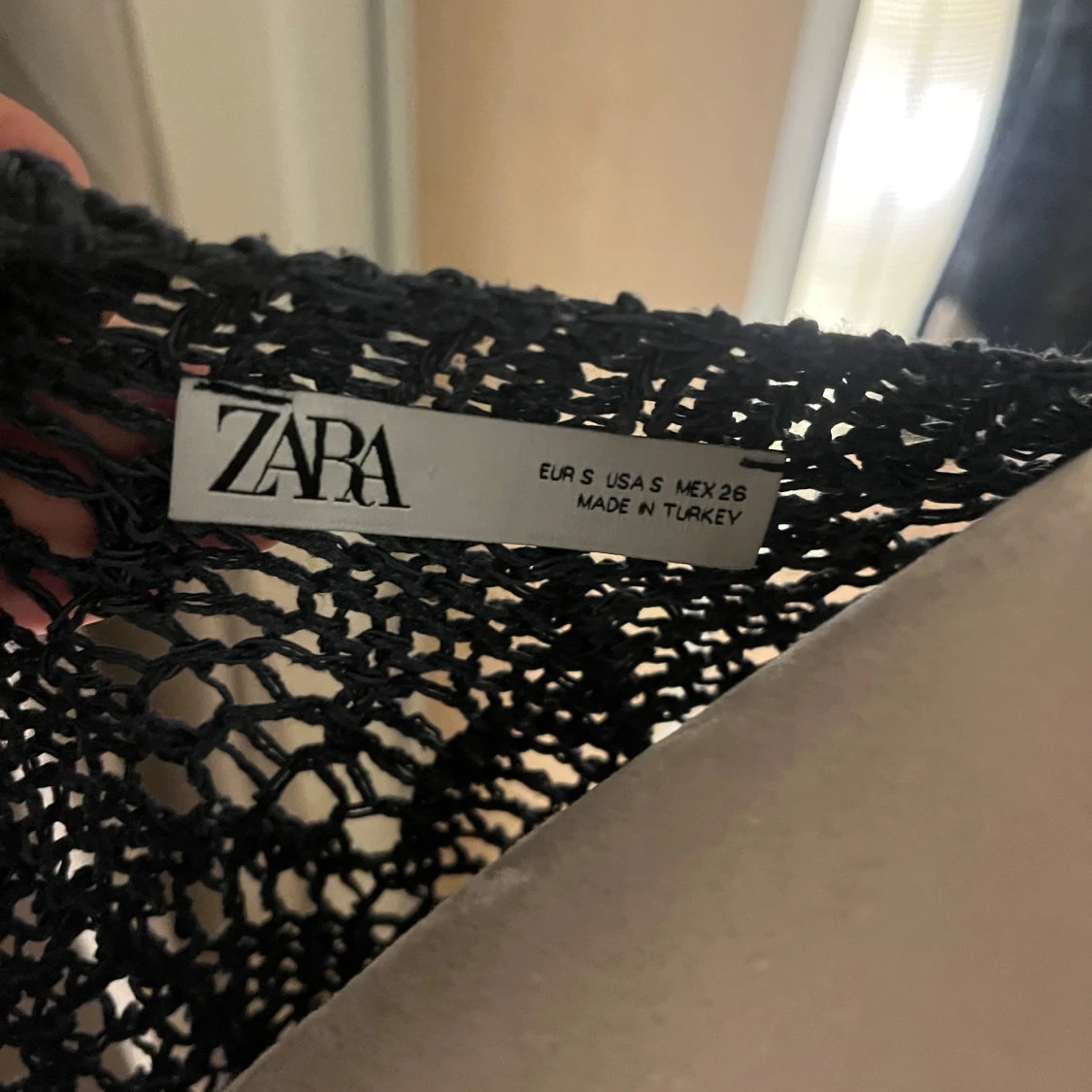 Säljer en Marinblå stickad tröja från Zara med ett snyggt hålmönster. Tröjan har långa ärmar som ger en trendig look. Perfekt för lager-på-lager-stil linne!