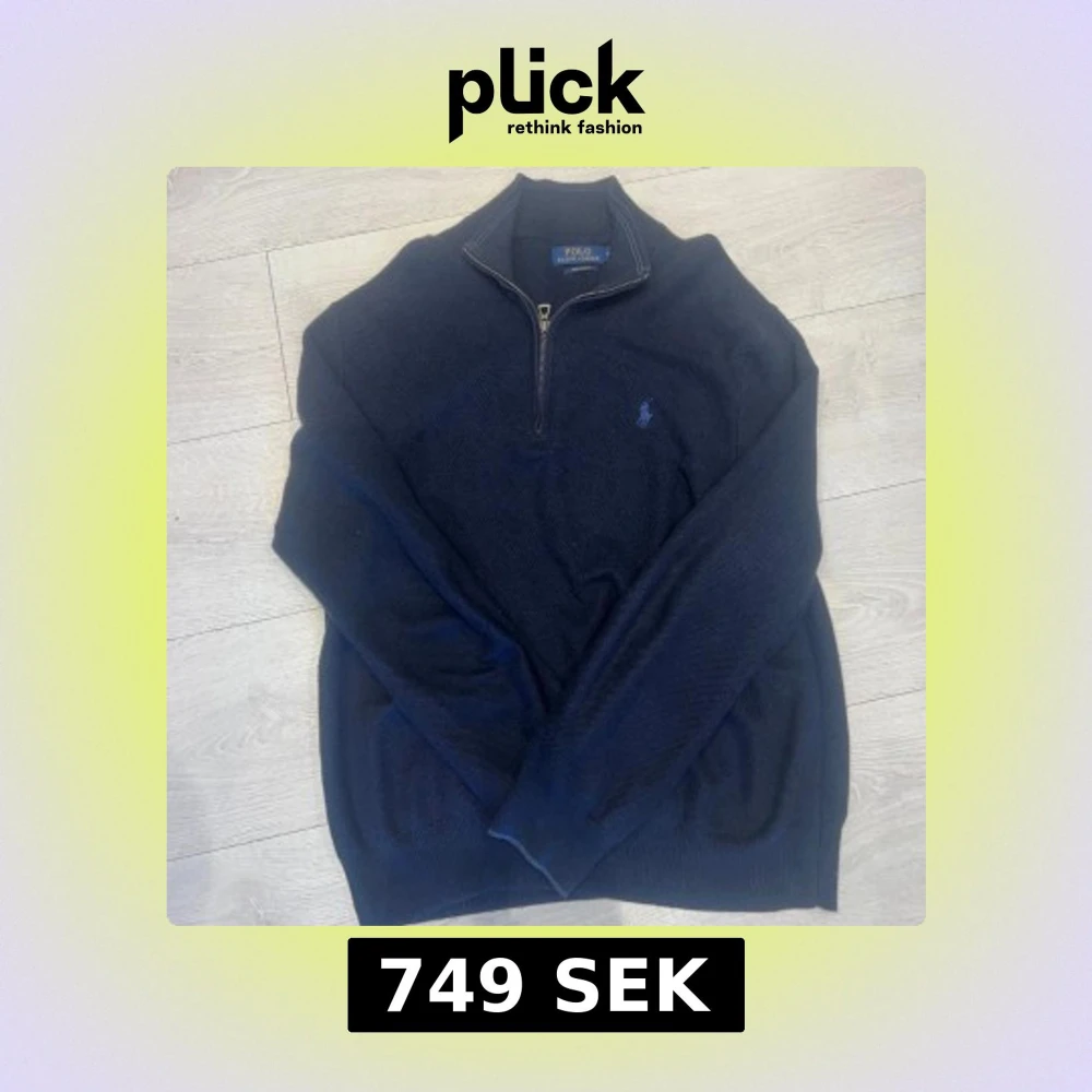 Snygg marinblå stickad tröja från Polo Ralph Lauren i mjuk pima bomull. Tröjan har half zip-dragkedja, långärmad design och den klassiska broderade loggan på bröstet. Perfekt för dig som gillar stilrena och tidlösa plagg. Storlek M men passar S