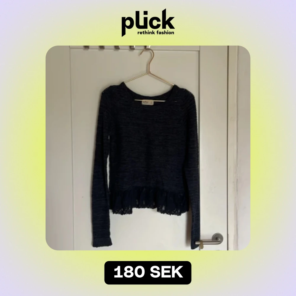 Söt sweater från Hollister. Den är i ganska tunt material och de är lite spetsdetaljer i slutet på den. Bra skick💗(den ser typ svart ut på de 2 första bilderna men den är mörkblå)🫶🏼