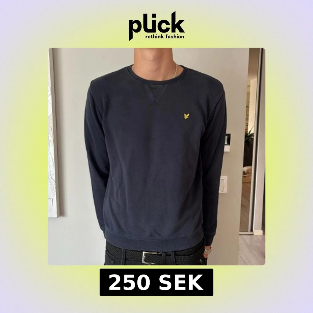 Marinblå sweatshirt från Lyle & Scott med klassisk rund hals och gul broderad logga på bröstet. Tröjan har långa ärmar och är tillverkad i mjuk bomull, perfekt för en chill och stilren look.