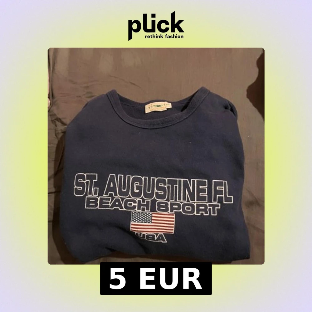 Säljer en marinblå sweatshirt från Retro Sport med tryck 'St. Augustine FL Beach Sport' och amerikansk flagga på bröstet. Klassisk rund halsringning och avslappnad passform. Perfekt för dig som gillar sportig och casual stil.
