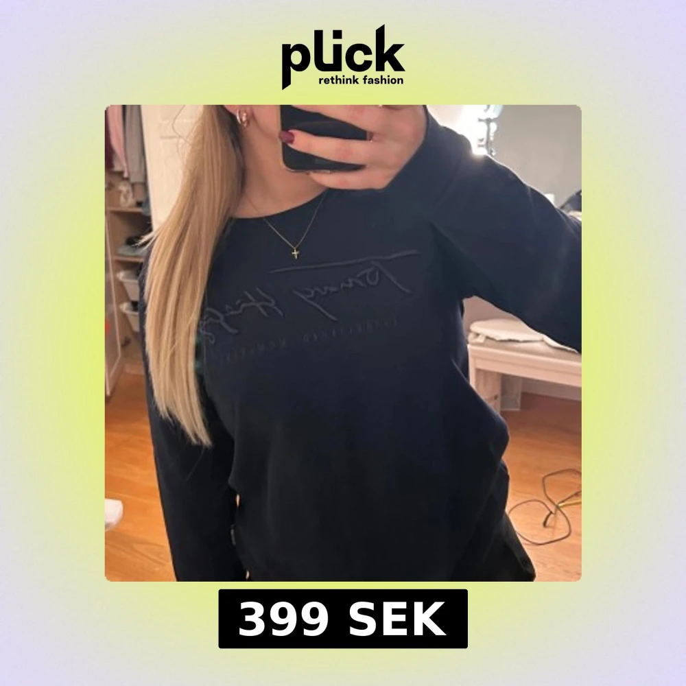 Säljer en stilren svart tröja från Tommy Hilfiger med diskret logga på bröstet. Tröjan har långa ärmar och en klassisk rund halsringning. Perfekt för en avslappnad look.
