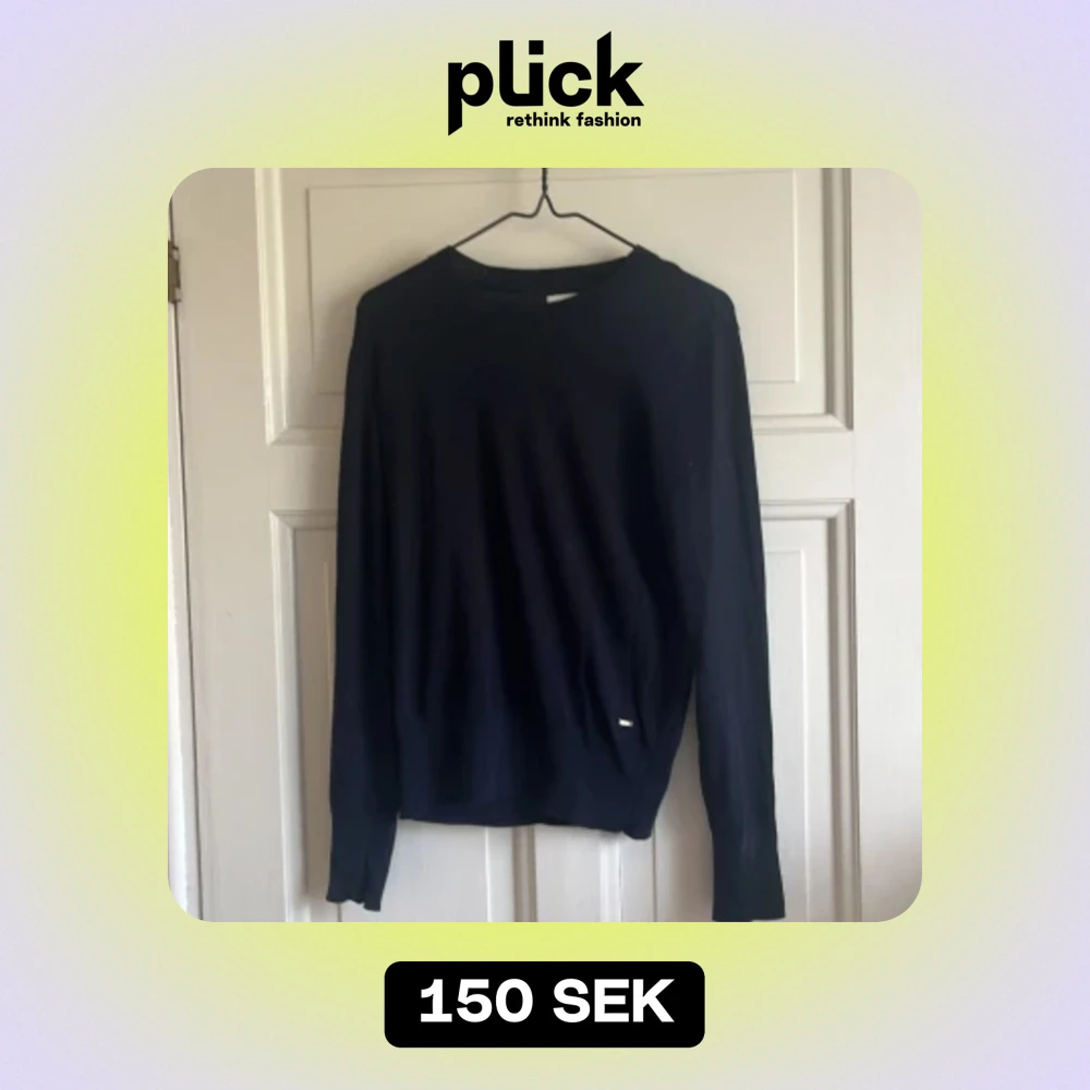 Marinblå tröja perfekt till hösten! Fint skick och nästan alldrig använd. Saknas en knapp på ena ärmen men det finns en extra i lappen på insidan, lätt att sy fast!