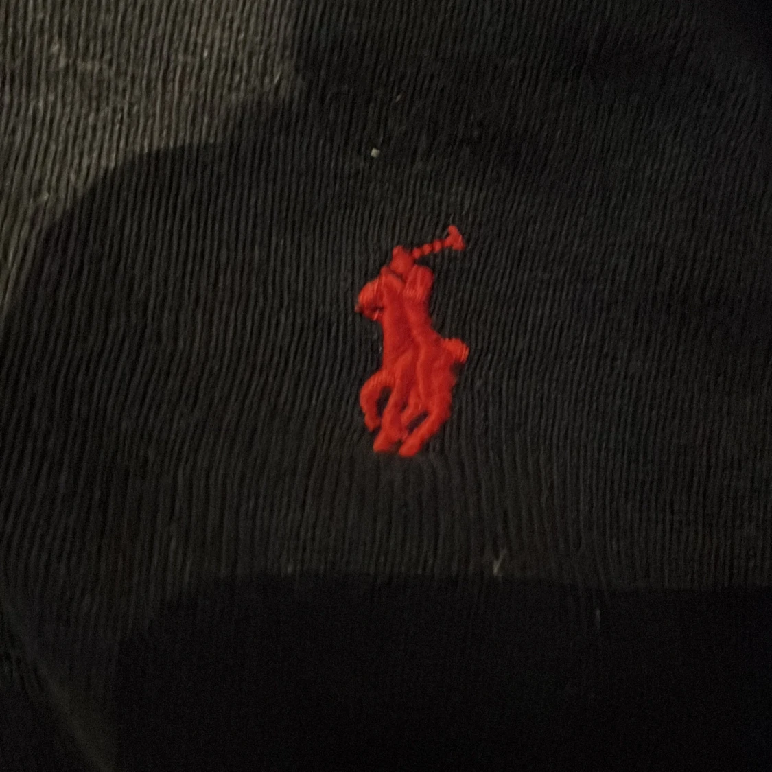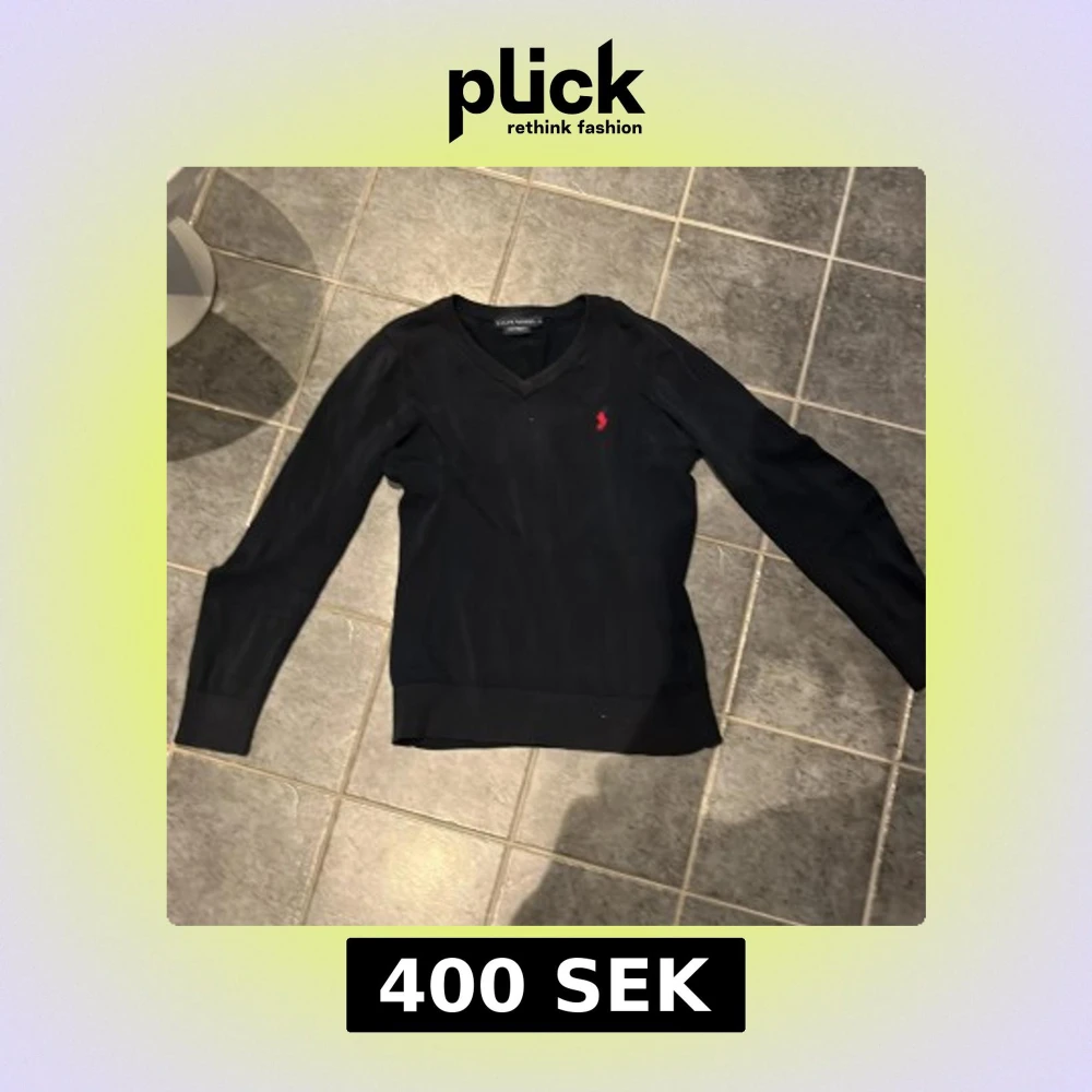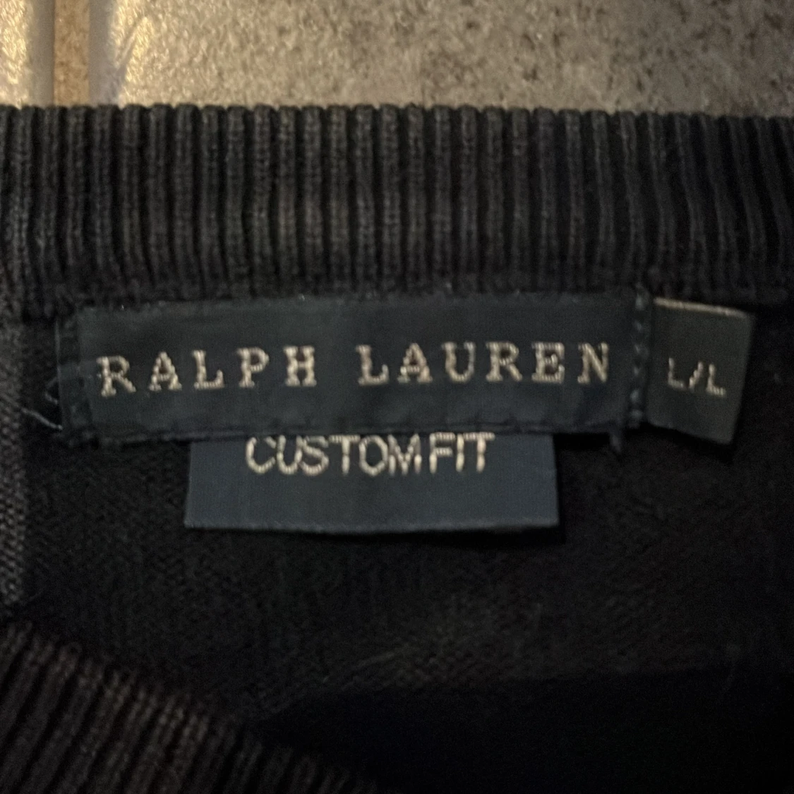 Marinblå v-ringad tröja från Ralph Lauren med röd broderad logga på bröstet. Tröjan är långärmad och har ribbade muddar vid ärmslut och nederkant. Custom fit-modell som sitter snyggt och passar perfekt till lager-på-lager-stil. OBS BARNSTORLEK!!
