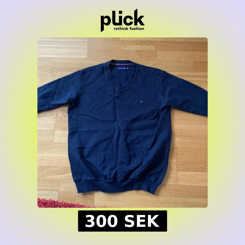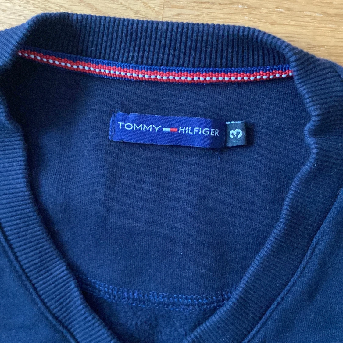 Snygg marinblå v-ringad tröja från Tommy Hilfiger med diskret logga broderad på bröstet. Tröjan har långa ärmar och ribbade muddar vid hals, ärmslut och nederkant. Tillverkad i mjuk bomull som är skön mot huden. Perfekt för dig som gillar klassisk stil med en modern touch.