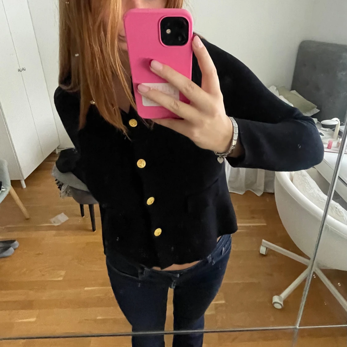 såå fin marinblå kofta med guldknappar från zara💘liten i storlek och passar m och s