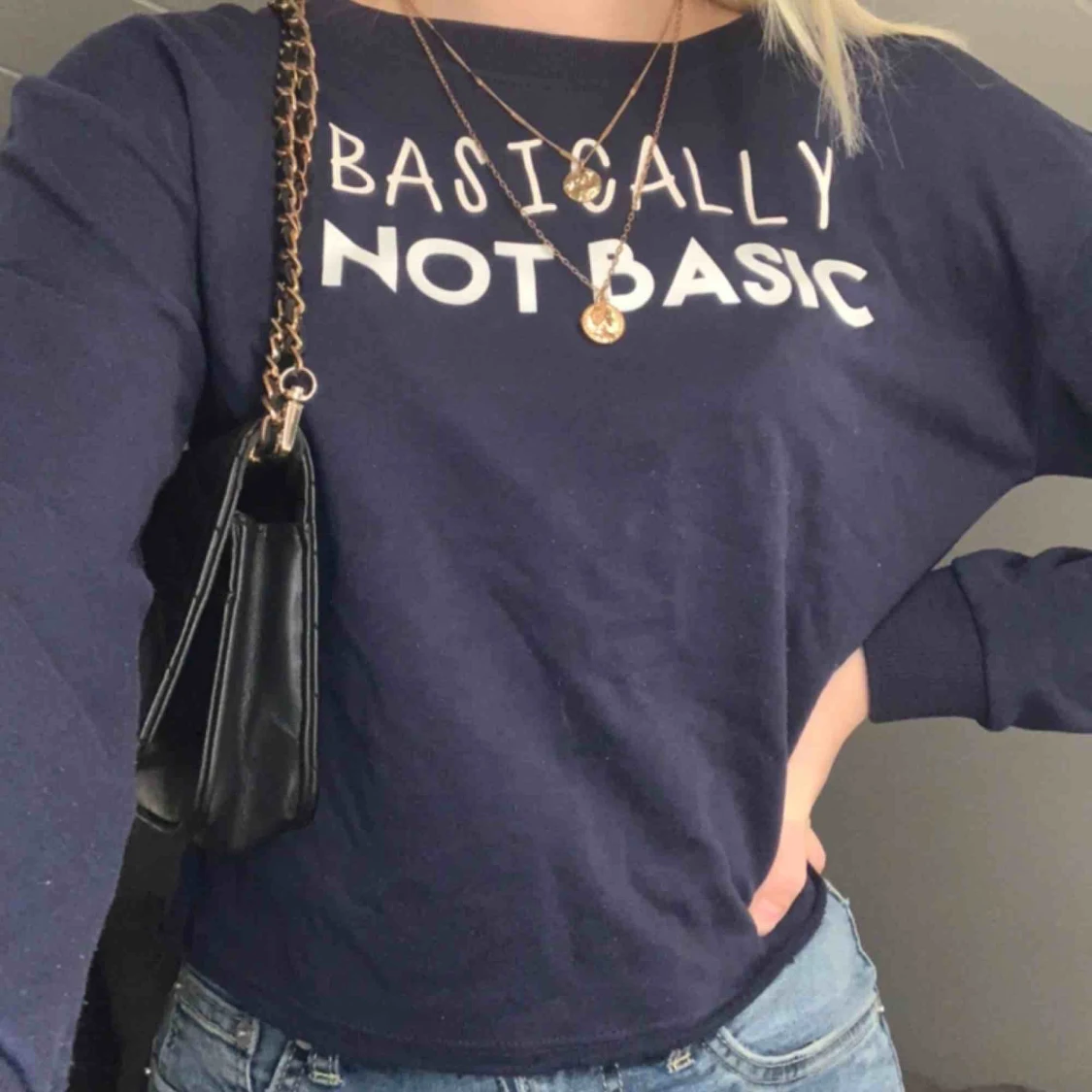Shitsnygg croppad långärmad tröja. Marinblå. Köparen står för frakten.