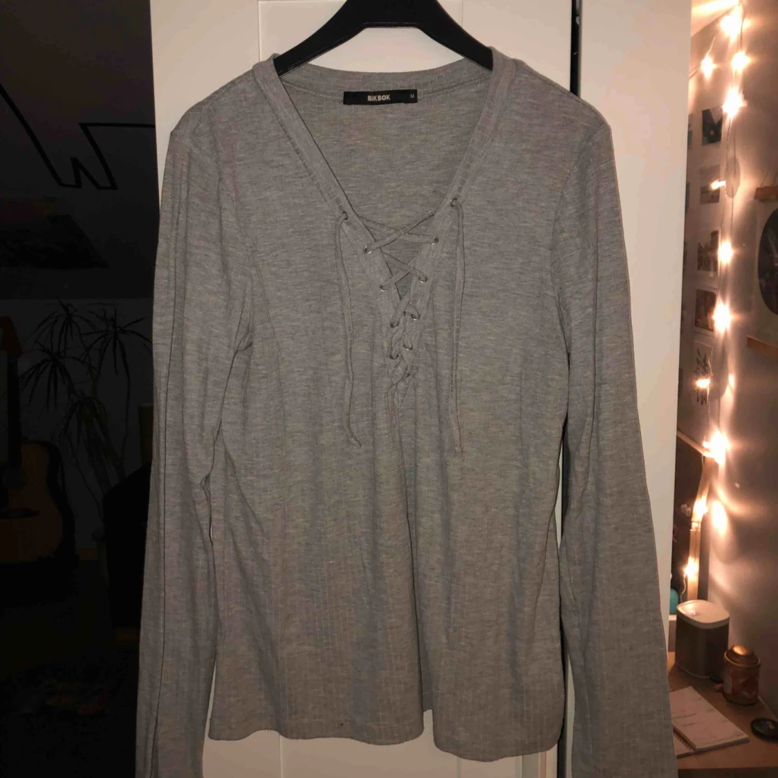 Grå långärmad tröja men snörning. Köparen står för frakten, kan mötas upp i Lund
