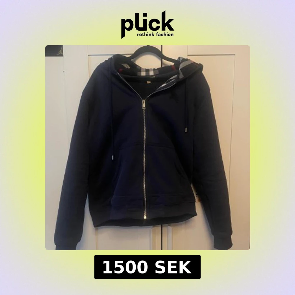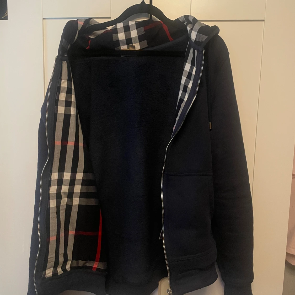 Säljer en marinblå hoodie från Burberry med hel dragkedja och klassisk rutig insida i huvan. Priset går att diskutera vid snabb affär.