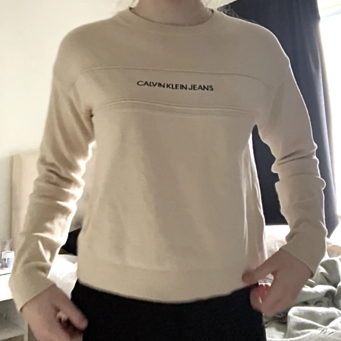 Beige Calvin Klein tröja, köpte för ett år sedan men har aldrig använt. Pris kan diskuteras🫶🏼 Nypris va runt 700kr