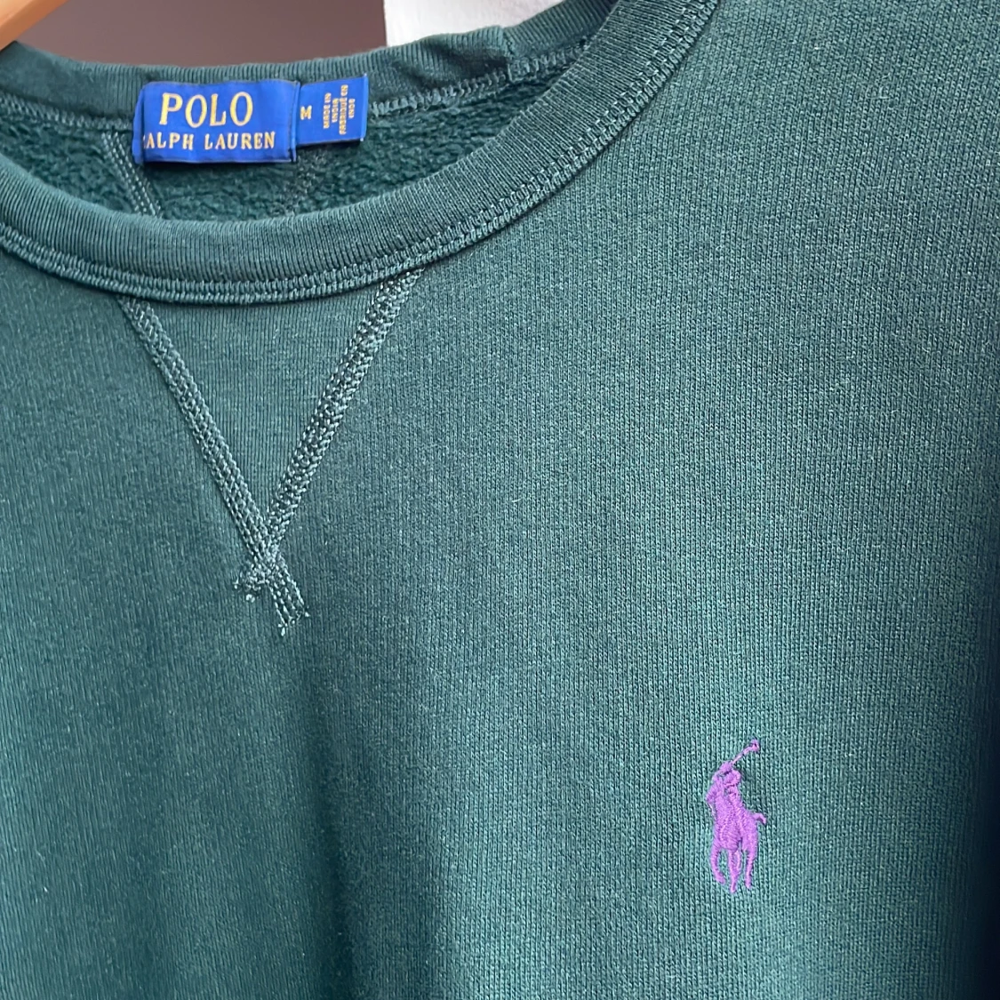 Strlk M. Mörkgrön tröja i kvalitativt material med lila logotyp. Över 1000kr retail