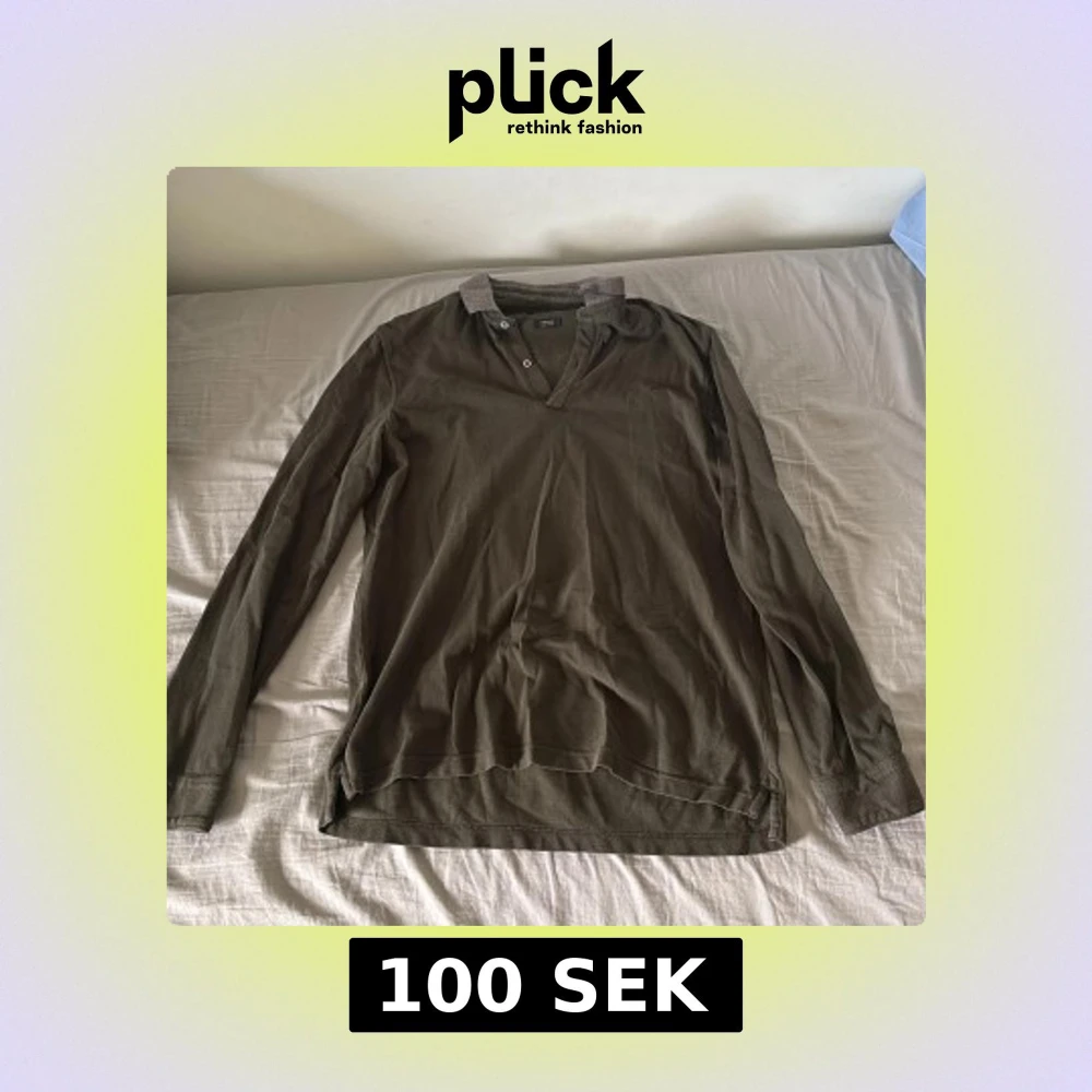 Säljer en olivgrön långärmad pikétröja från Massimo Dutti med snygg gråmelerad krage och manschetter. Tröjan har två knappar vid halsen och är tillverkad i bomull. Perfekt för dig som gillar stilren och chill look.