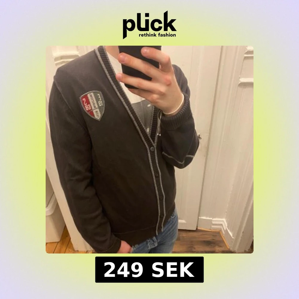 Säljer en stilren brun cardigan med ett coolt emblem på bröstet. Koftan har ribbade muddar och en knappstängning framtill. Från märket Esprit, jag har oftast storlek S/M men denna är L(Dom vita prickarna är på spegeln och inte tröjan) tveka inte att kontakta vid eventuella frågor 😀