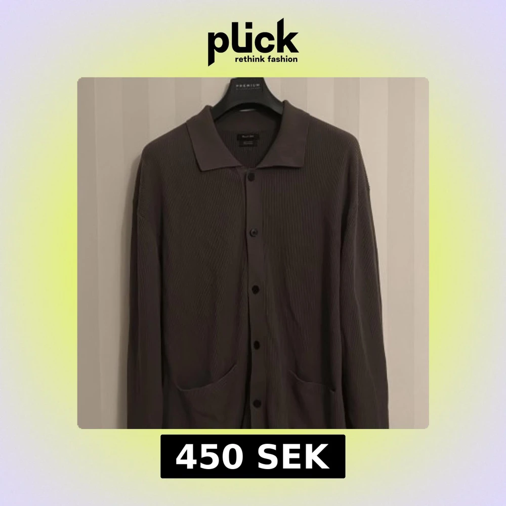 Säljer en stilren Khakigrön kofta från Massimo Dutti i 100% bomull. Koftan har ribbad struktur, klassisk krage, knäppning framtill och två fickor. Knappt använd