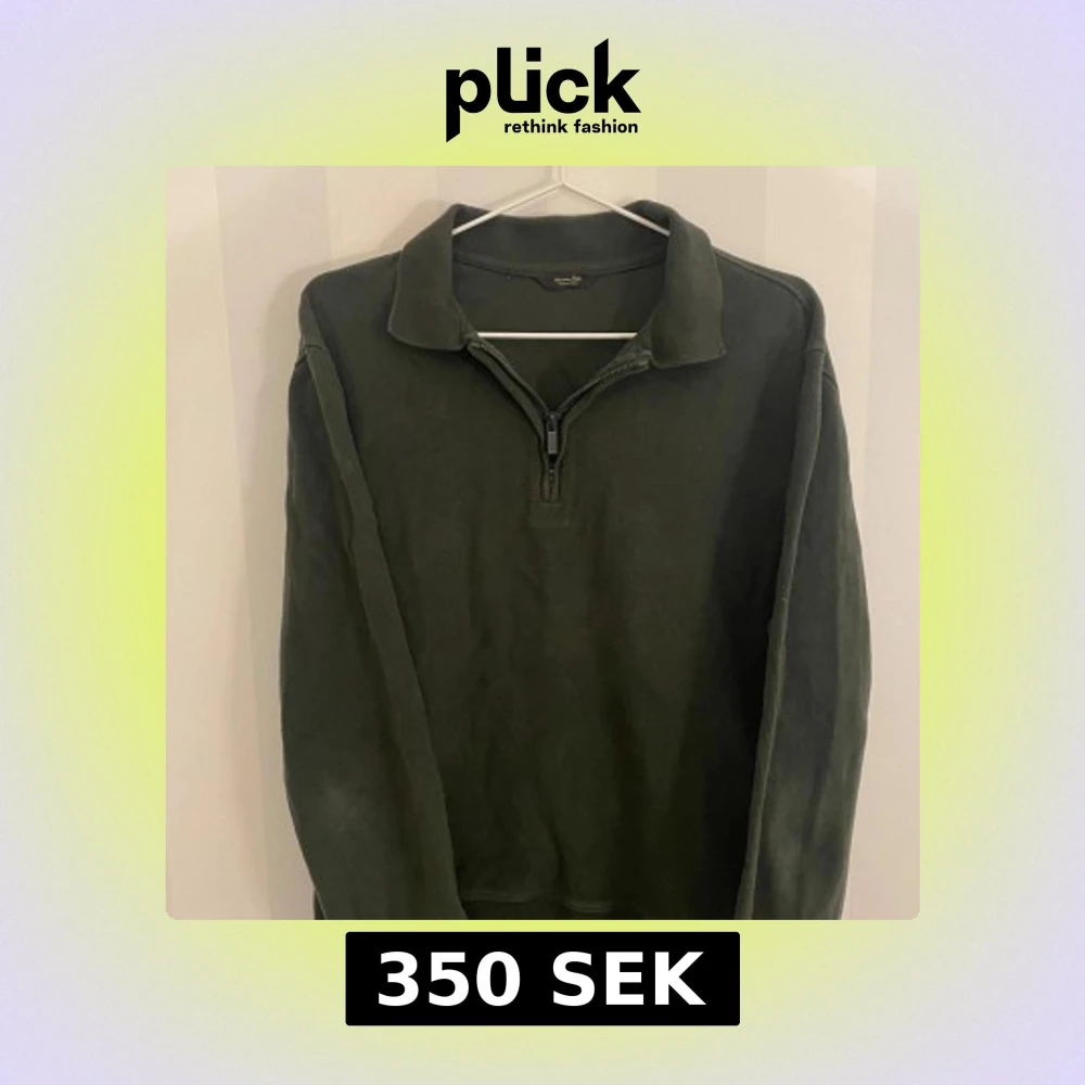 Snygg grön tröja från Massimo Dutti med dragkedja och krage. Perfekt för kyligare dagar med sin stilrena design och bekväma passform. Tveka inte att hojta till vid eventuella frågor!