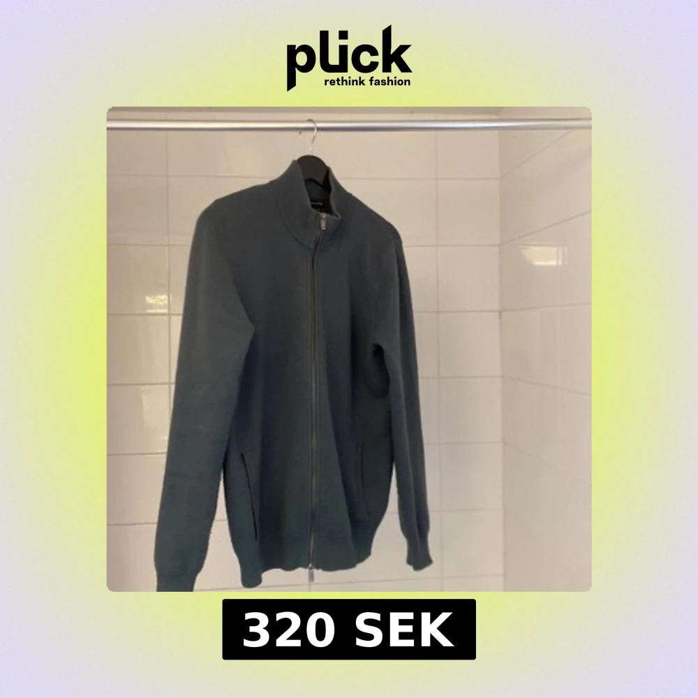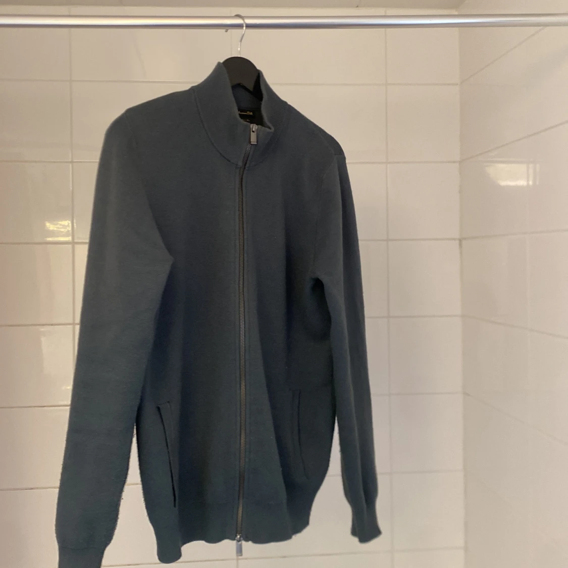 Grön tröja från Massimo Dutti med dragkedja framtill. Tröjan har långa ärmar och en hög krage. Gott skick men väl använd.