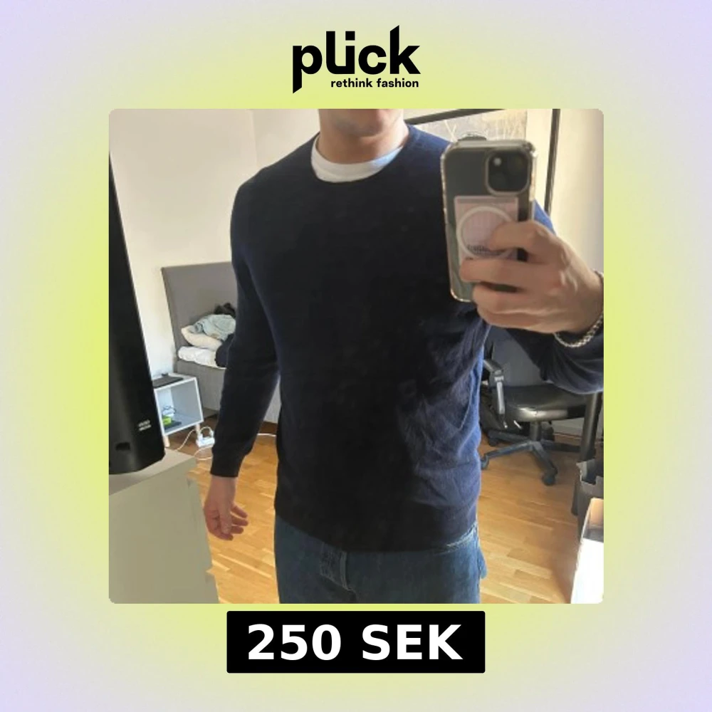 Säljer en stilren mörkblå rundhalsad tröja från Massimo Dutti i en mix av ull och kashmir. Tröjan är i princip som ny men är för liten för mig. Sparsamt använd.
