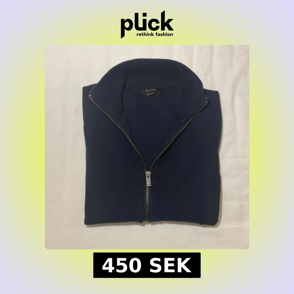 Säljer en stilren mörkblå tröja från Massimo Dutti i bomull. Tröjan har en praktisk dragkedja framtill och långa ärmar. Perfekt för en avslappnad men ändå elegant look.