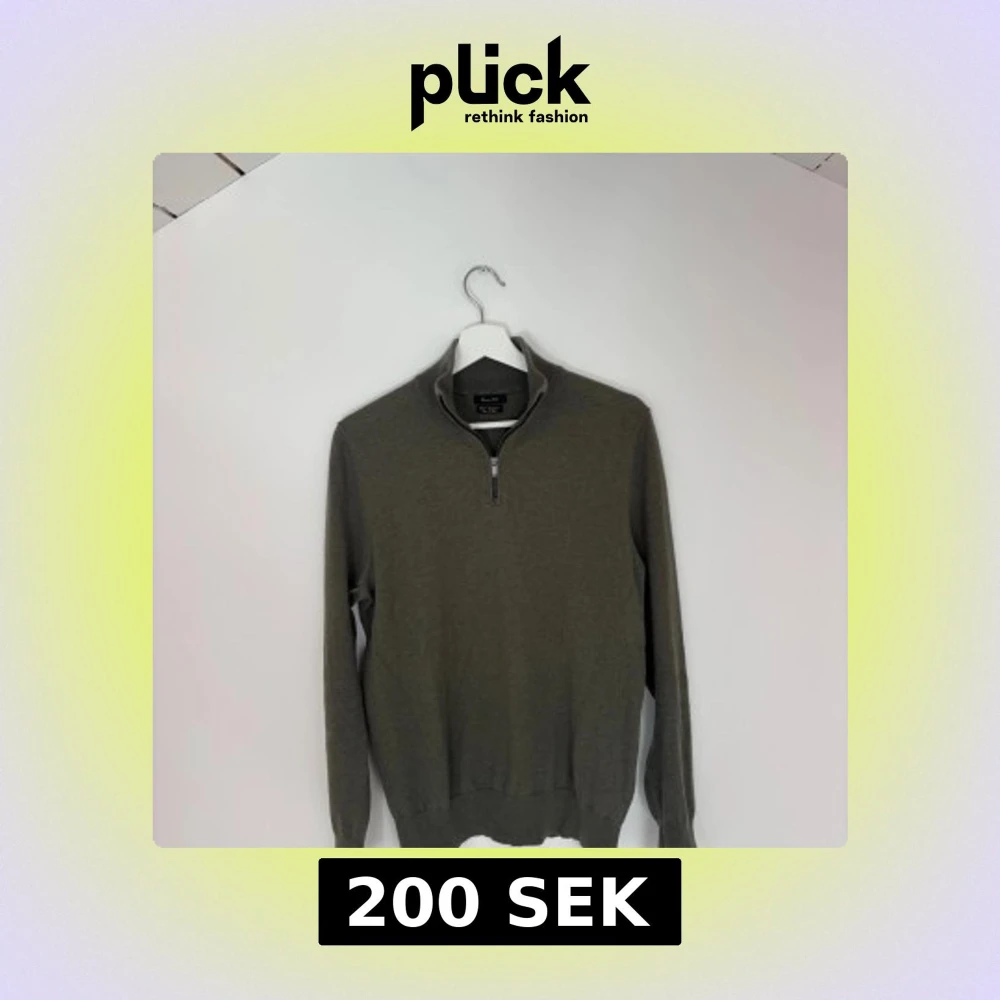 Olivgrön långärmad tröja från Massimo Dutti med halv dragkedja vid kragen. Tröjan har en stilren design med ribbade muddar och är tillverkad i mjuk bomull.