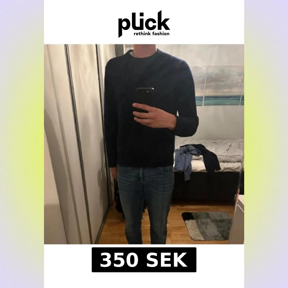 Snygg mörkblå tröja från Massimo Dutti i mjuk ull och kashmirmix. Klassisk rund hals med ribbad kant och långärmad passform. Perfekt för dig som gillar stilrena och bekväma plagg med lite lyxig känsla. Passar 180 cm