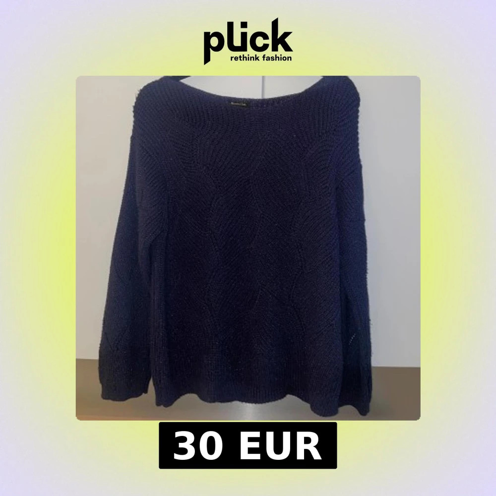 Säljer en mörkblå stickad tröja från Massimo Dutti i italienskt garn, med gnistar. Tröjan har ett snyggt strukturmönster, rund halsringning och långa ärmar. Perfekt för kyliga dagar och enkel att matcha med jeans.
