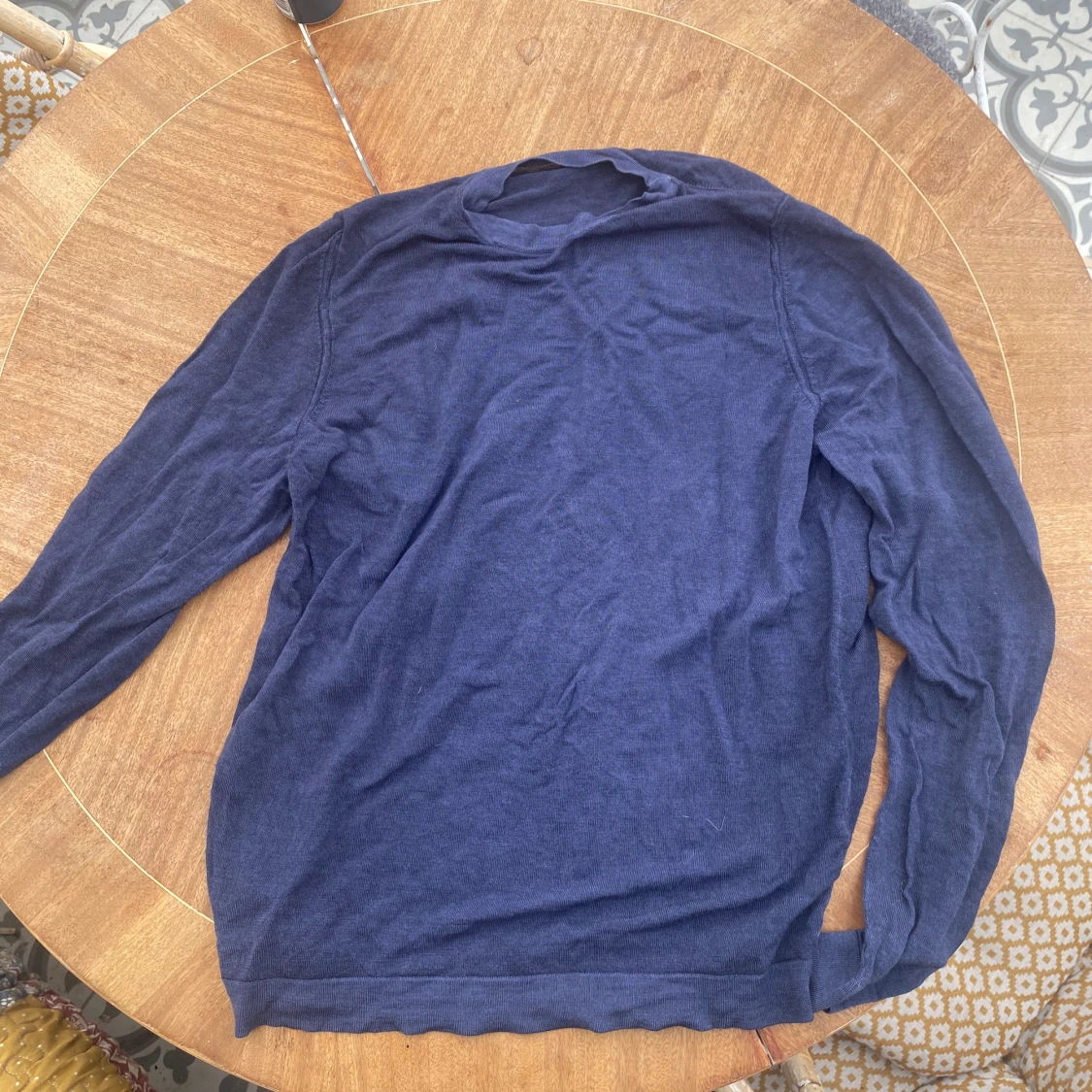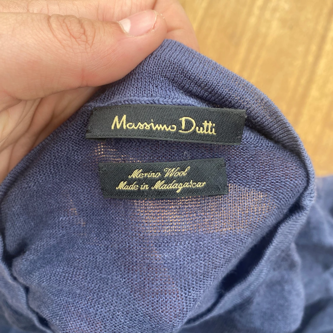 Säljer en tunn och mjuk långärmad tröja i blått från Massimo Dutti. Tillverkad i merinoull, perfekt för lager-på-lager och passar till många olika stilar. Klassisk och enkel design utan synliga detaljer.
