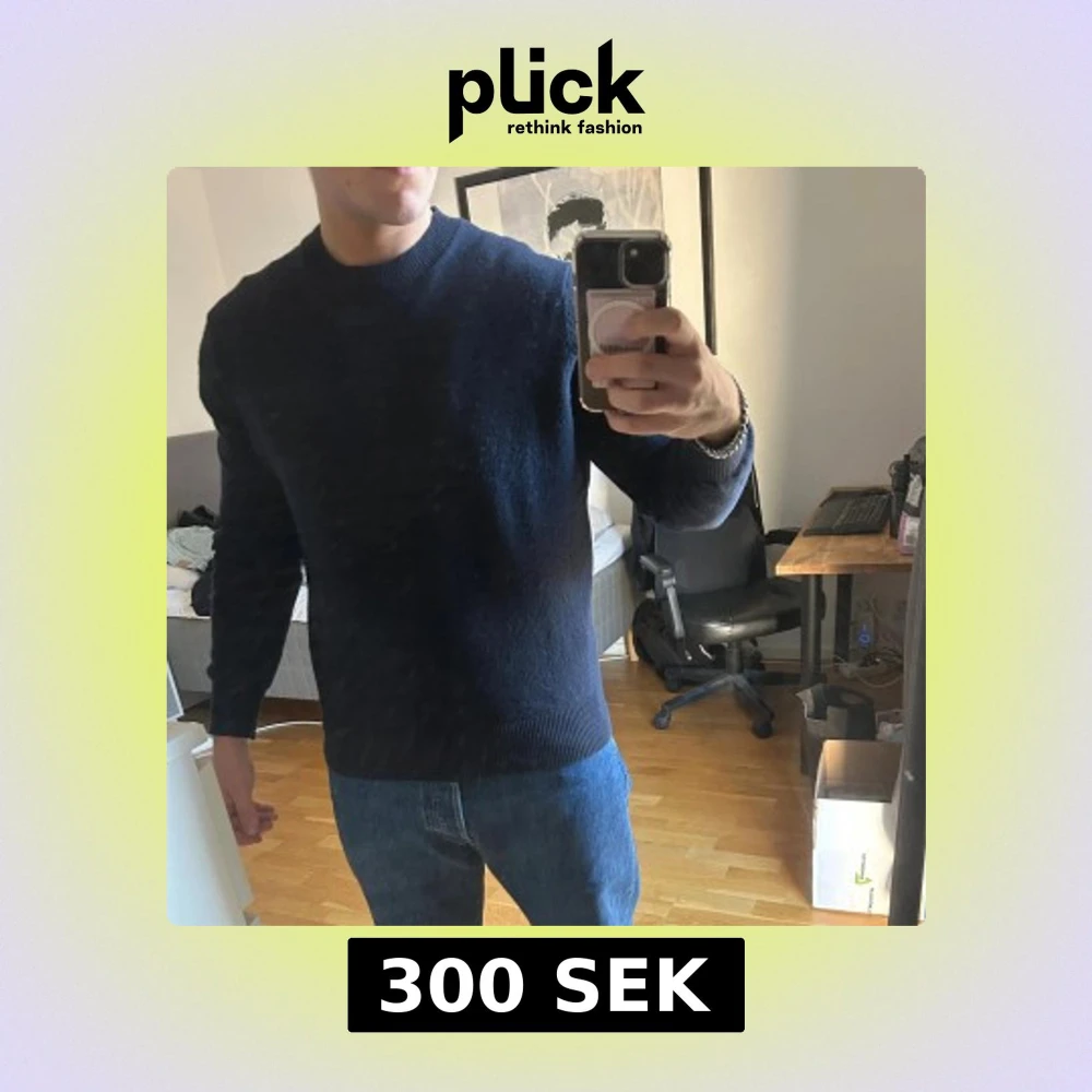 Säljer en stilren mörkblå stickad tröja från Massimo Dutti i storlek M. Tröjan har rund halsringning, ribbade muddar och är långärmad. Lite för liten för mig men i väldigt bra skick. Använd ganska mycket men trots det i bra skick.