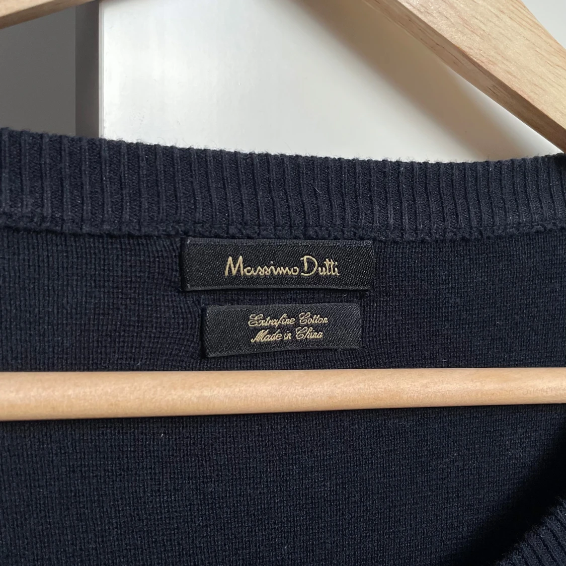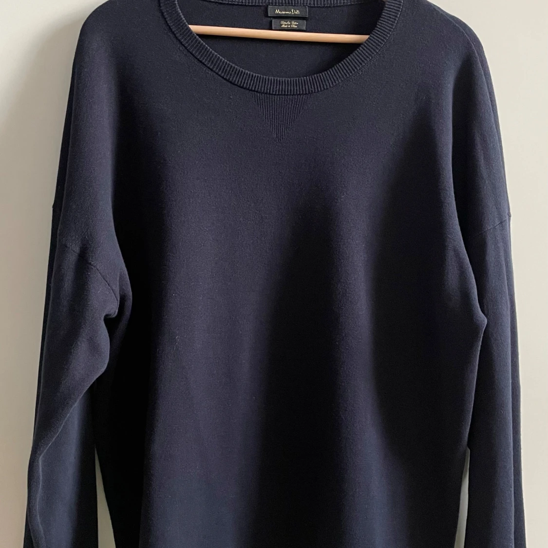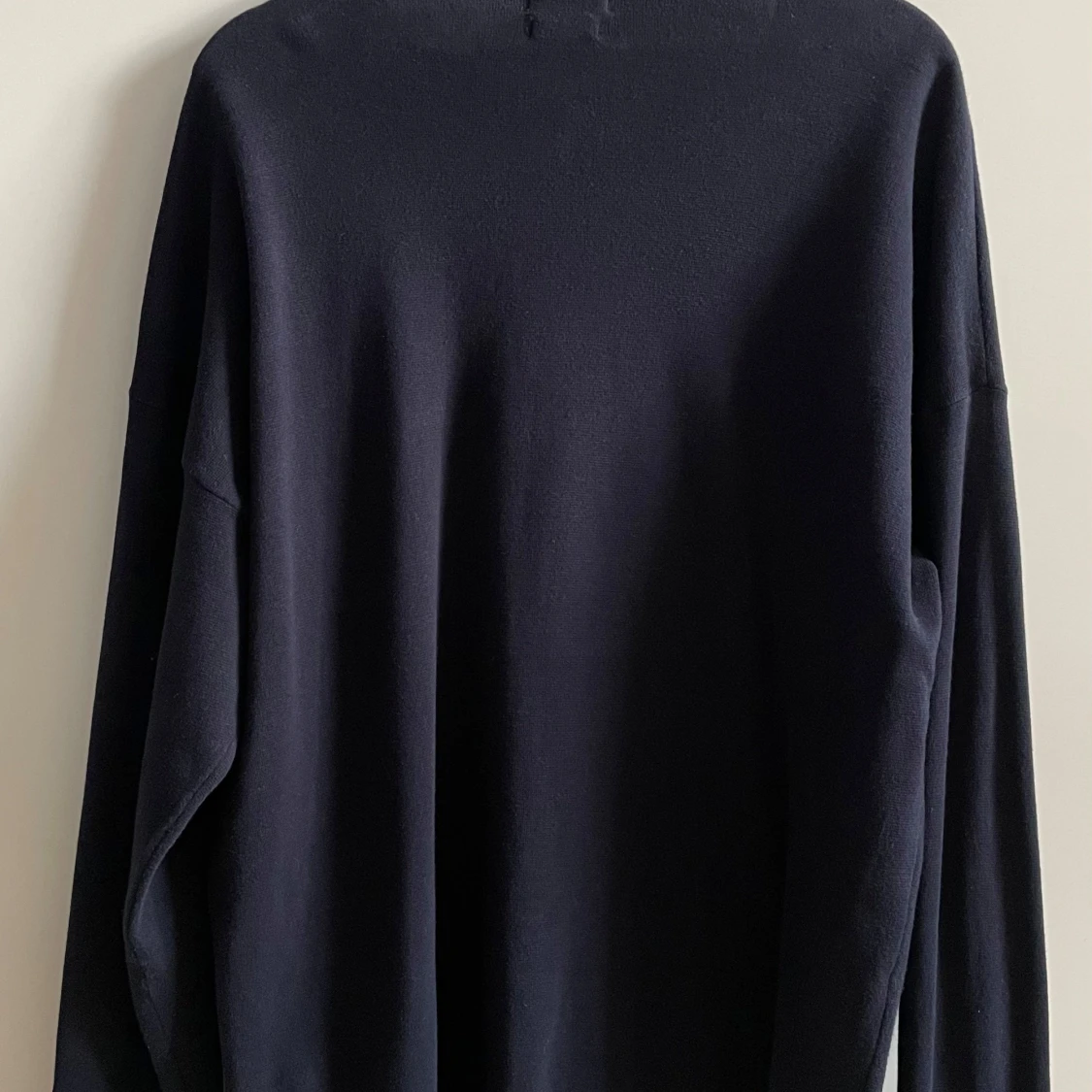 En stilren mörkblå tröja från Massimo Dutti. Endast använd någon enstaka gång och är i nyskick! Den är väldigt skön och i hög kvalitet (100% bomull). Säljer den för endast 200kr även fast den är i princip helt ny för vill bli av med den!
