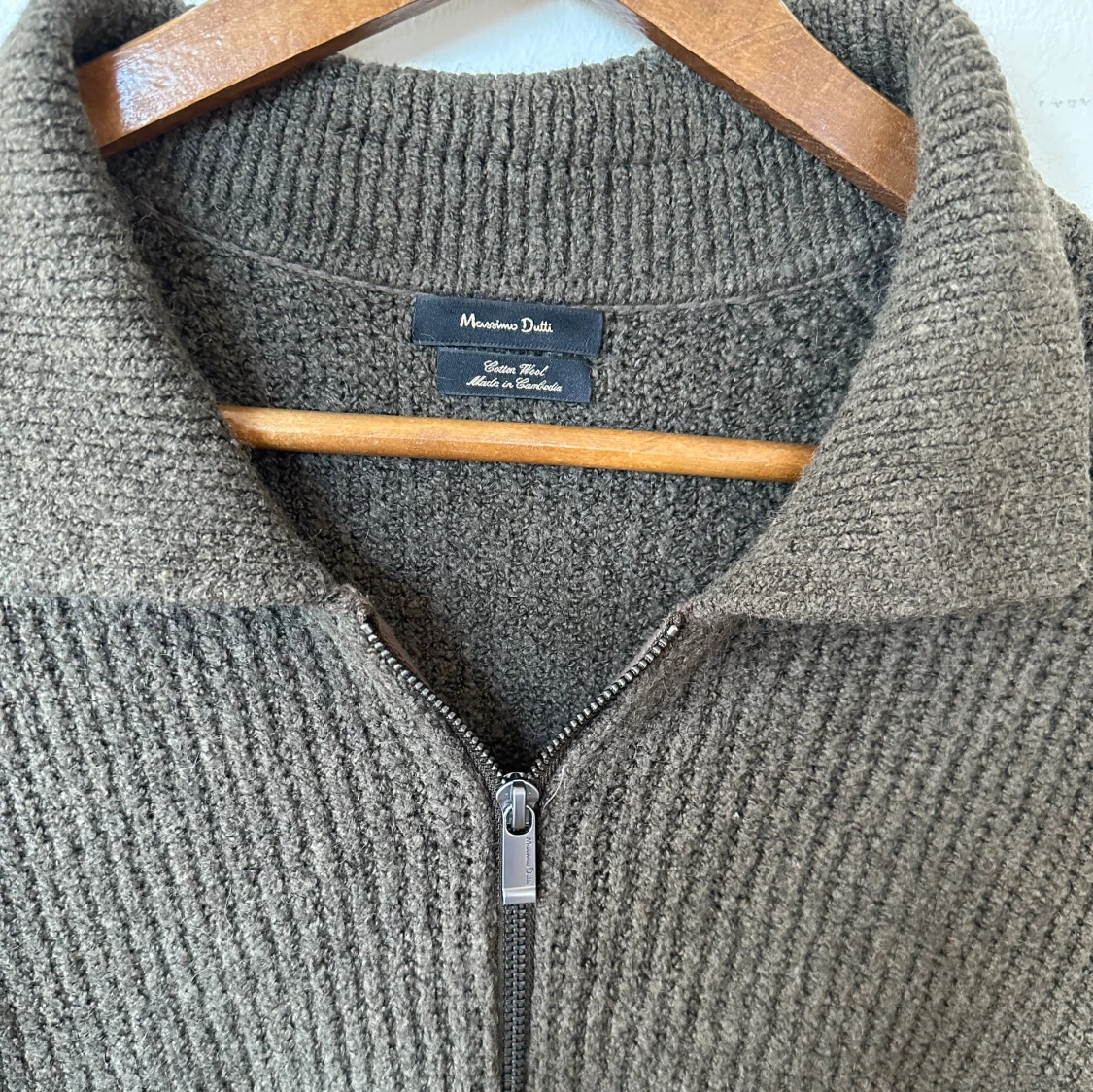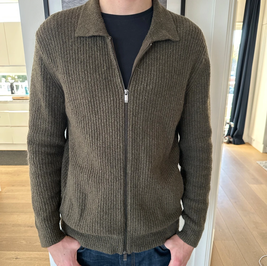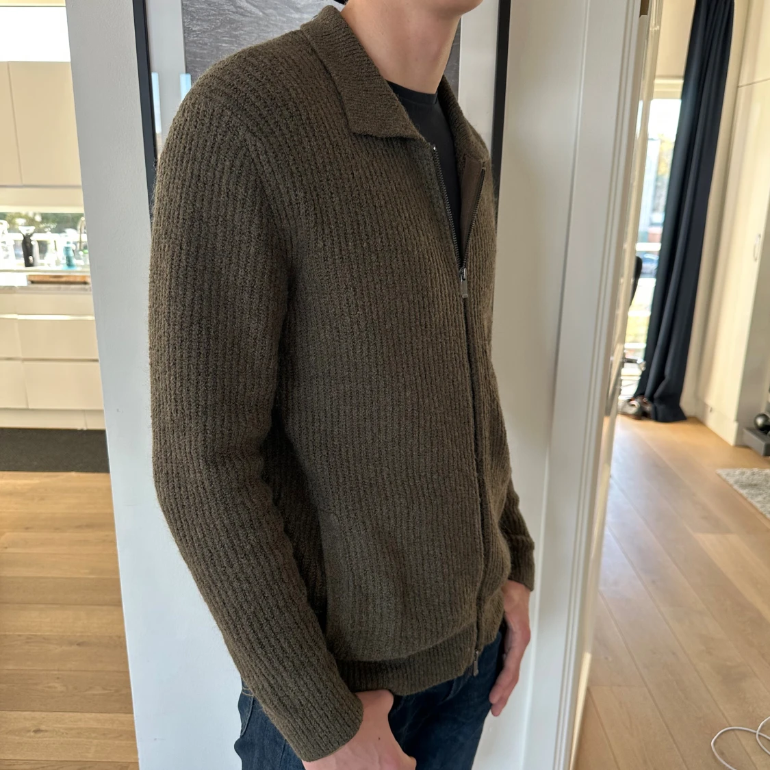 Säljer en olivgrön sällsynt stickad kofta cardigan från Massimo Dutti. Koftan har en snygg krage, hel dragkedja framtill och ribbad struktur. Perfekt för lager-på-lager och chill höststil. Grymt skick, inga defekter. Nypris 1999kr. Vårat pris 899kr. Storlek L. Modellen är 186 cm. Skriv vid minsta intresse!