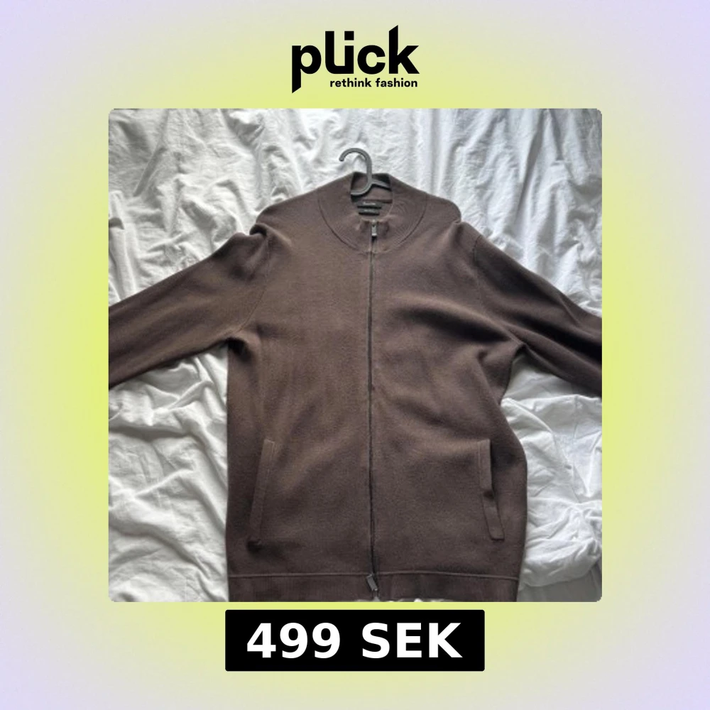 Väldigt bra skick Brun stickad cardigan tröja Massimo Dutti med dragkedja framtill och två fickor. Ribbad krage och muddar ger en stilren look