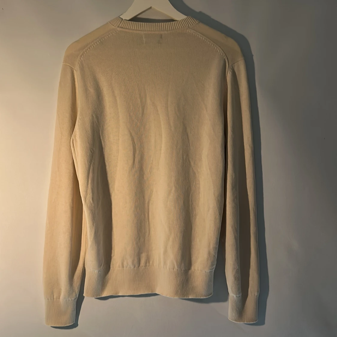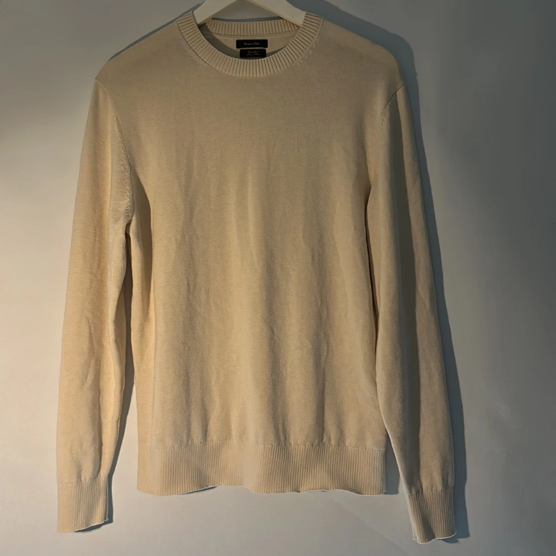 Snygg beige stickad tröja från Massimo Dutti med rund hals och ribbade muddar. Tillverkad i en mjuk blandning av bomull och ull, perfekt för lager på lager. Riktigt bra skick, kom privat för frågor eller funderingar.💭🙌🏻