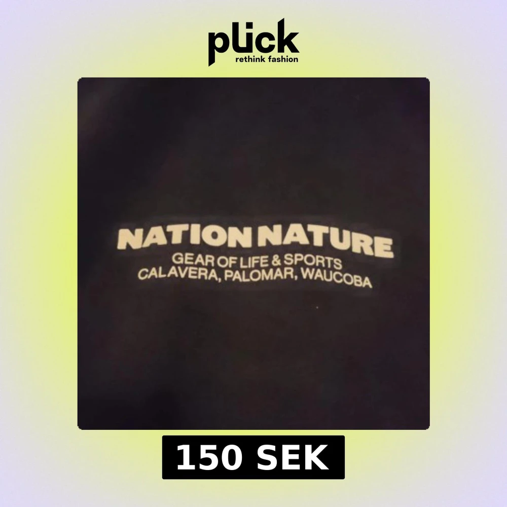 Säljer en svart hoodie från Nation Nature med tryck på bröstet och ryggen. Tröjan har en klassisk känguruficka och justerbar huva med snören. Perfekt för en avslappnad stil.Den har lite fläckar men ingen märker .Pris kan diskuteras