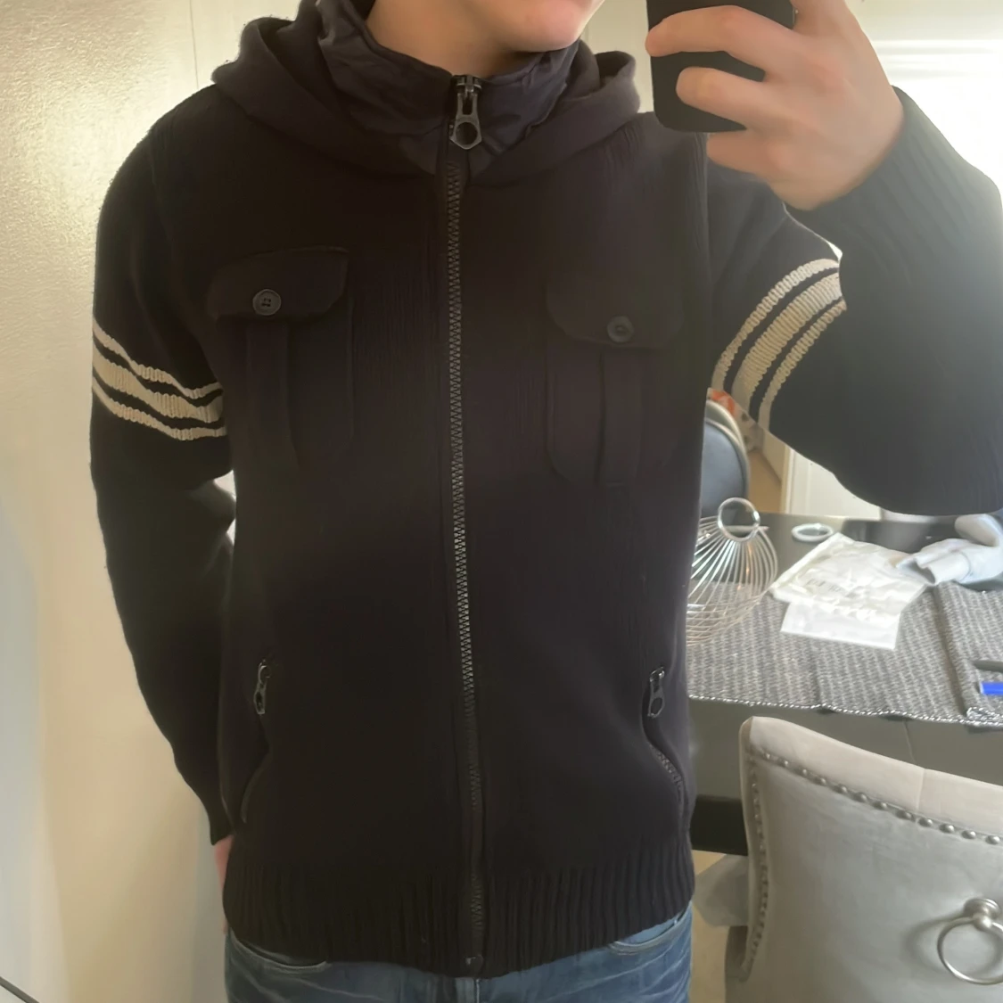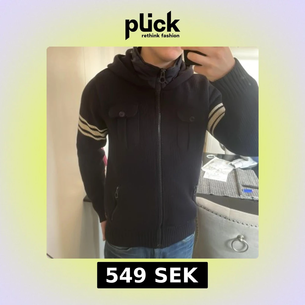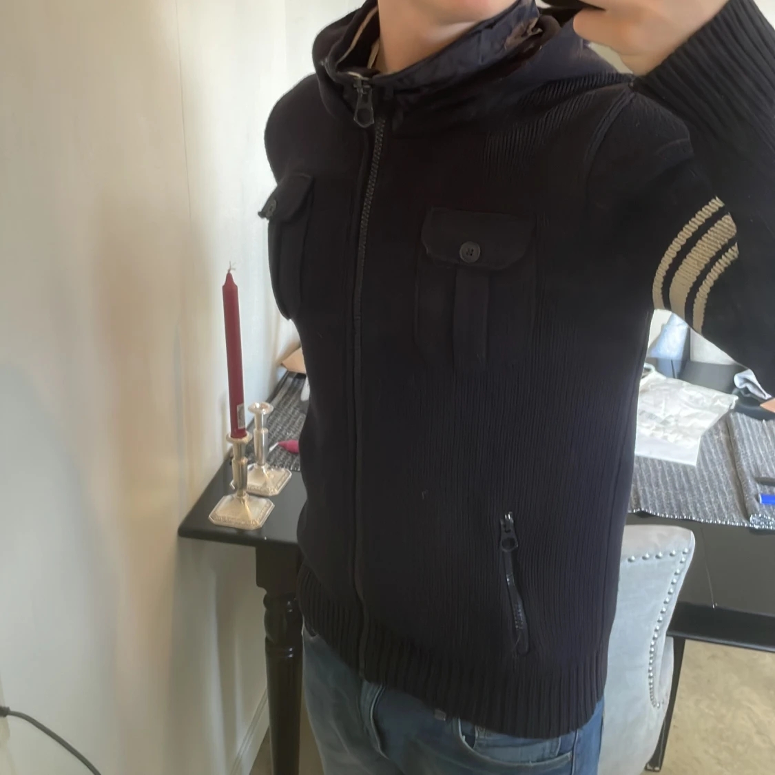 Otroligt snygg stickad cardigan med luva. Passar perfekt till kallare väder. Modellen är 180cm, 73kg. Priset går att diskutera så skicka gärna iväg ett prisförslag!