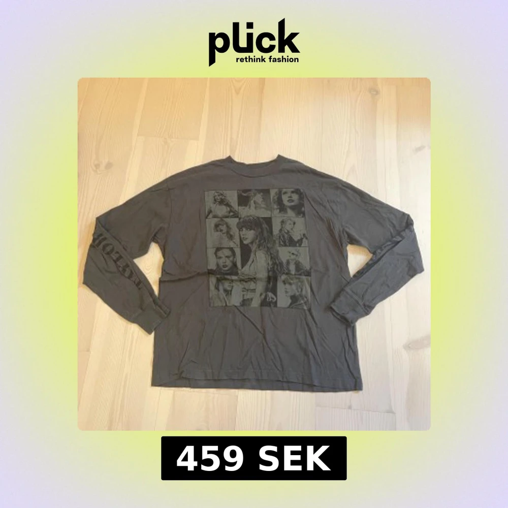 [OFFICIELL MERCH från hennes hemsida] Svart långärmad tröja från Taylor Swift The Eras Tour med stort tryck av olika bilder på Taylor Swift på framsidan och texten 'THE ERAS TOUR' på båda ärmarna. OBS: Den är i storlek S men upplever den som ganska stor i storleken.