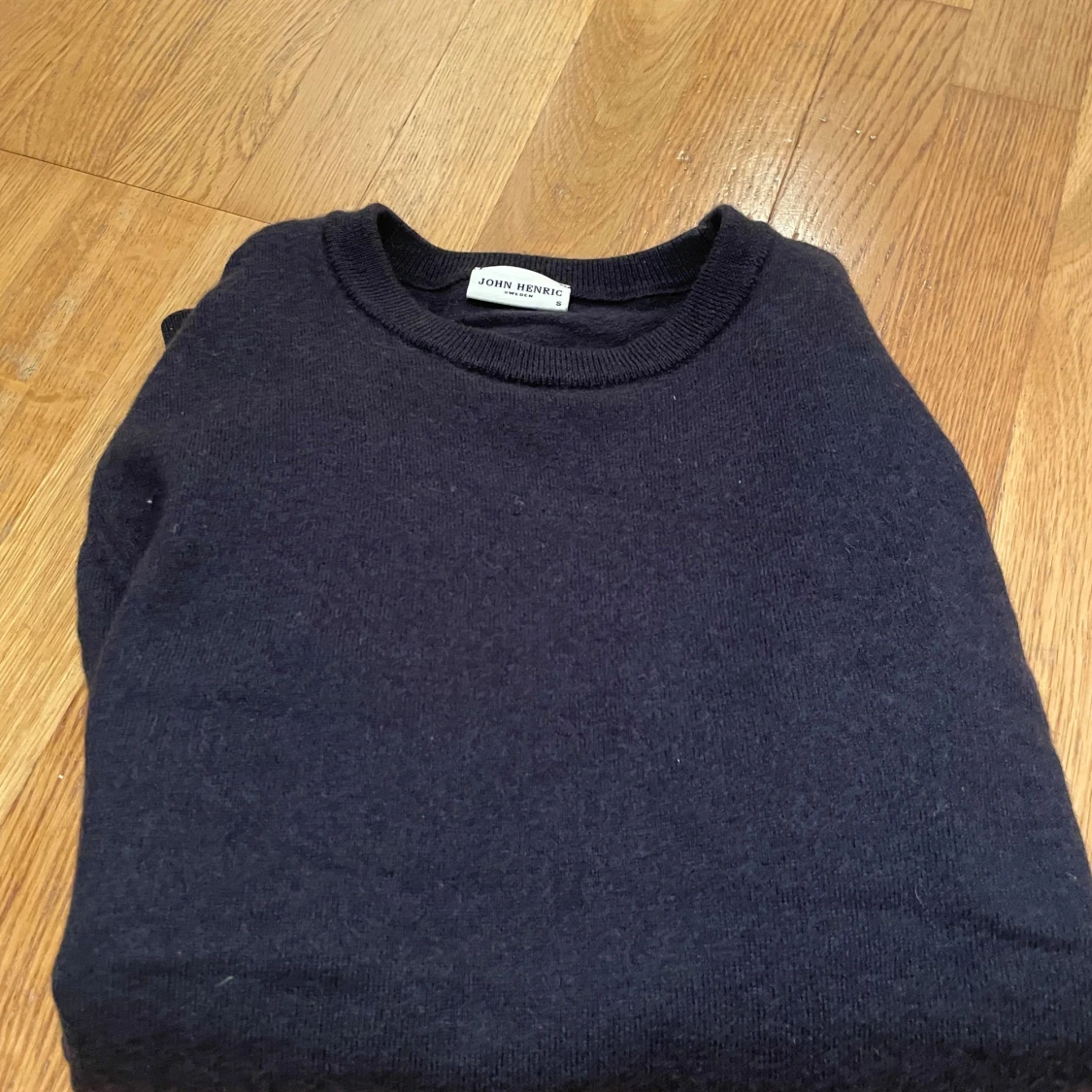 Klassisk marinblå tröja från John Henric i 100% merinoull. Rund hals och ribbade muddar vid ärmslut och nederkant. Perfekt för dig som gillar stilrena och tidlösa plagg. Långärmad och mjuk mot huden, passar dig som vill ha en enkel men snygg look. OBS den är ganska liten i storleken eftersom den krympt lite i tvätten!!!
