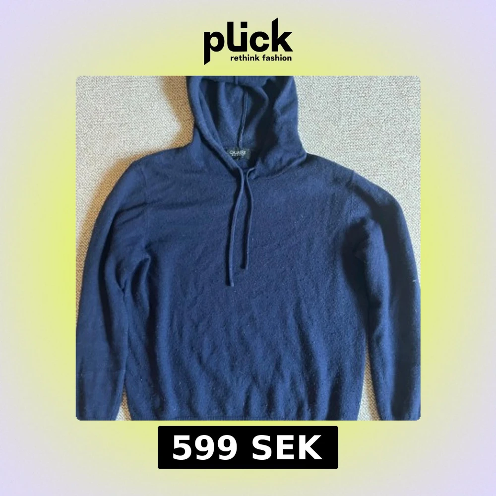 Säljer en stilren mörkblå kashmirboaning hoodie från Calmire. Den är i storlek s men passar XS.